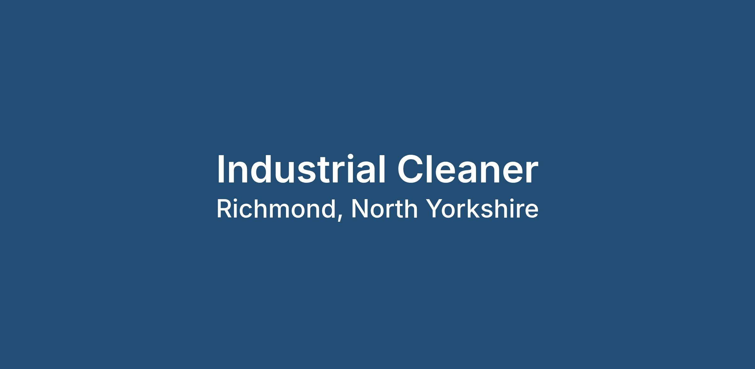 We are currently recruiting Industrial Cleaners to join our team based in the Richmond, North Yorkshire area.