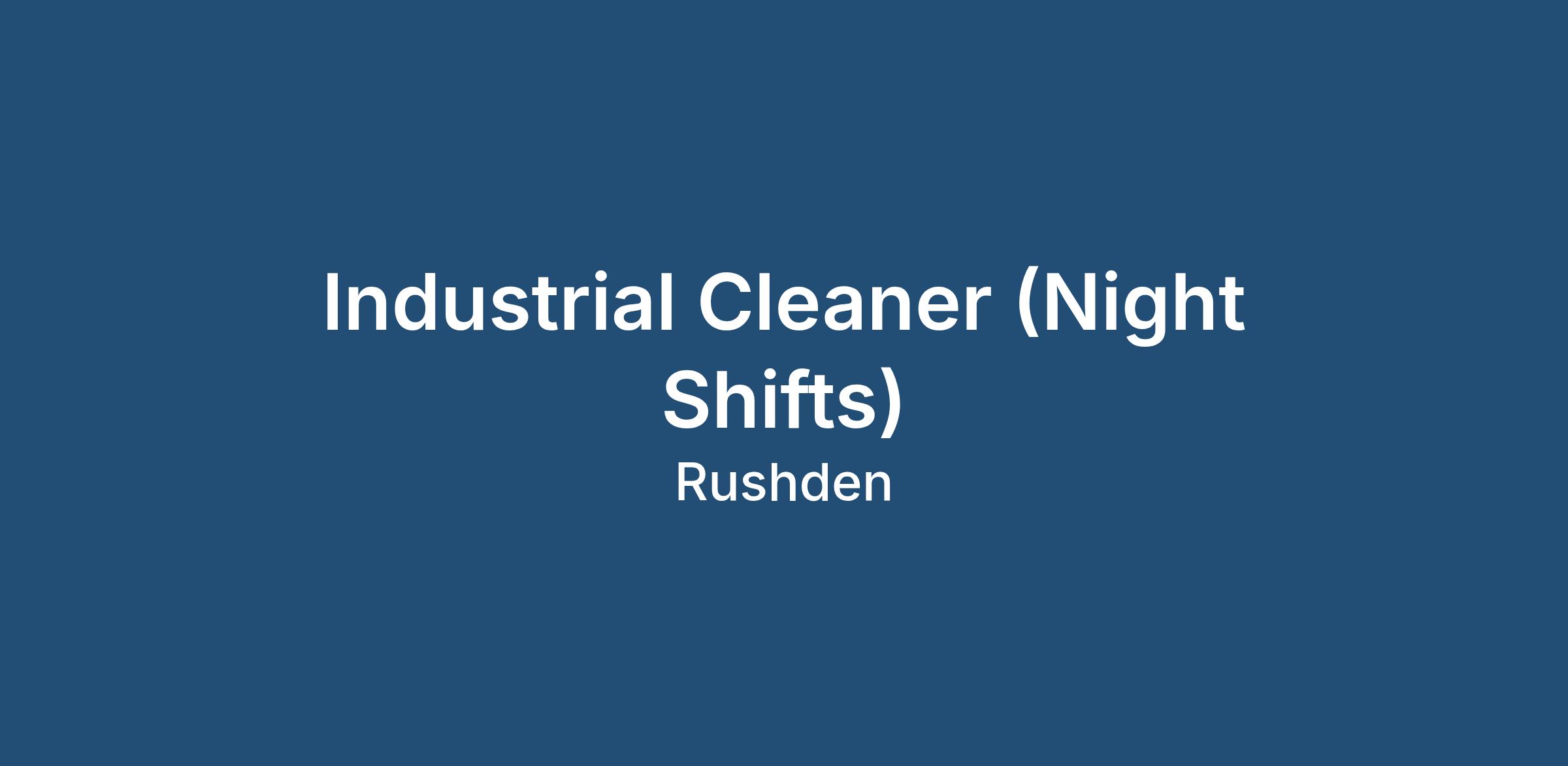 We are an agency recruiting on behalf of a leading cleaning company seeking reliable and hardworking Industrial Cleaning Operatives to join their specialist team. Working at Rushden Shopping Centre, this role involves working across retail sites, focusing on the cleaning of external cladding and signage.