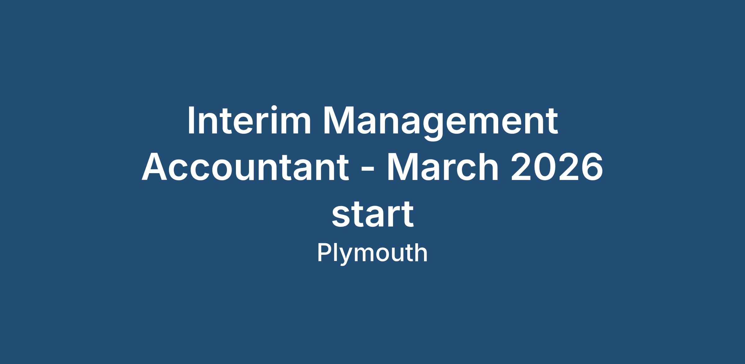 Interim Management Accountant - March 2026 start