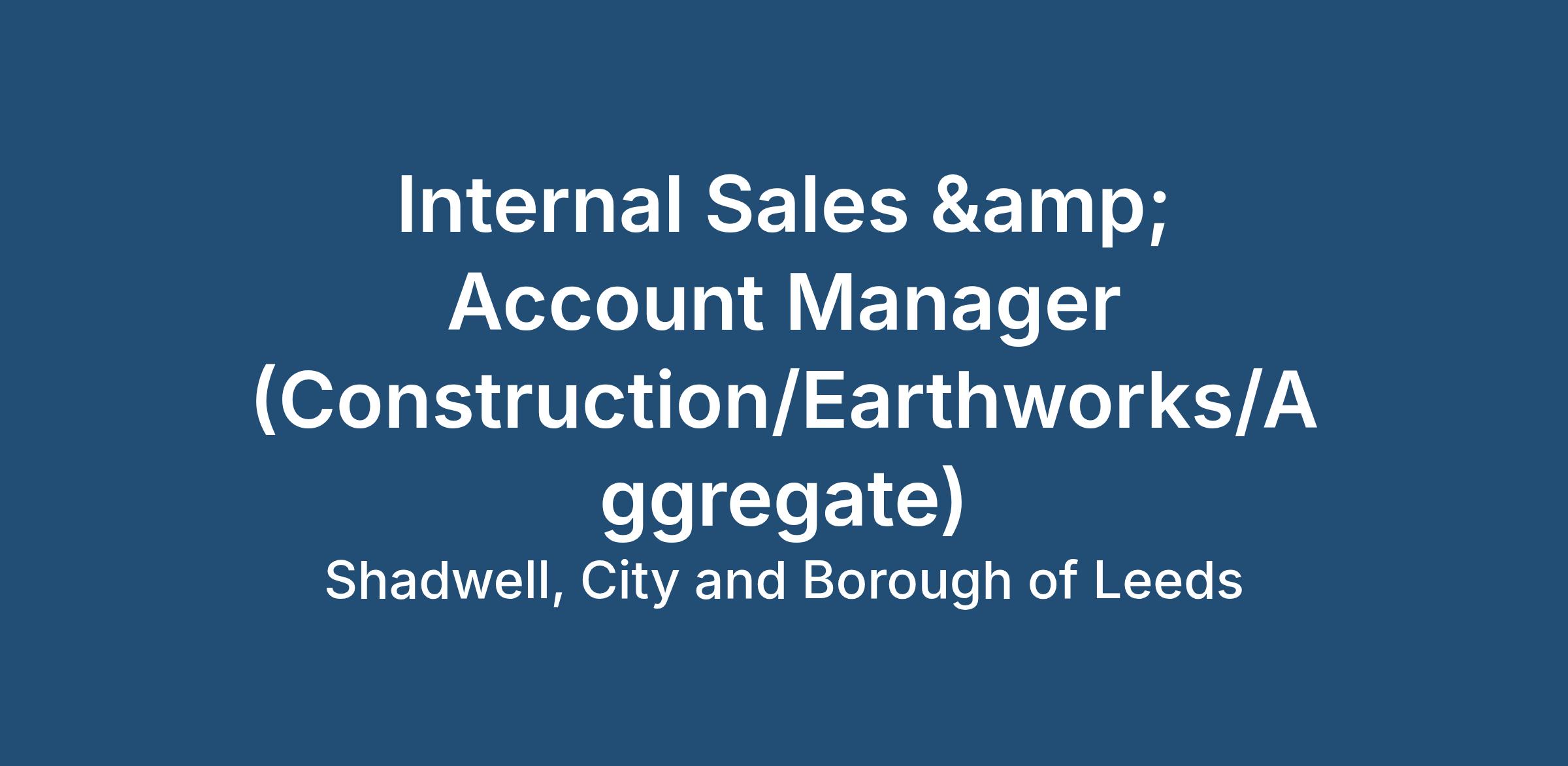 Job Title: Internal Sales & Account Manager (Construction/Earthworks/Aggregate)