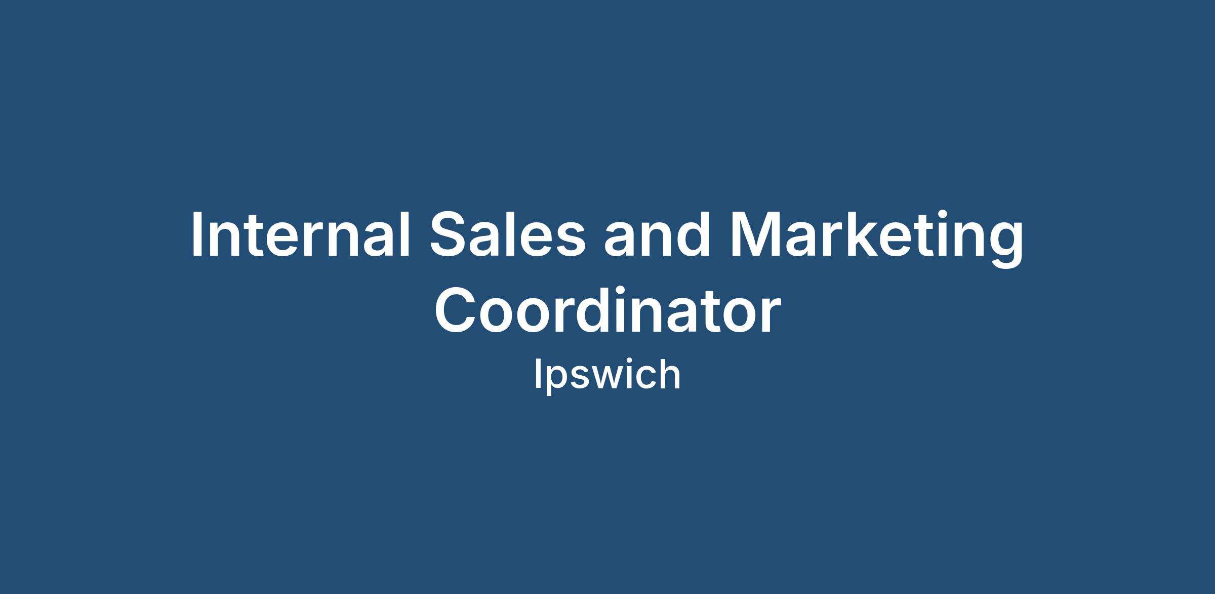 A client of ours in the Ipswich area are recruiting an Internal Sales and Marketing Coordinator to join their team. This is a full-time permanent position working Monday - Friday 8.30am - 5.00pm and paying a negotiable salary depending on experience.