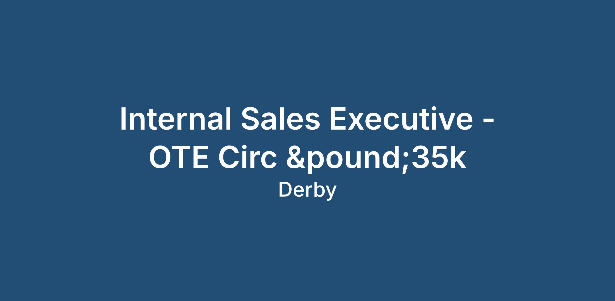 Internal Sales Executive / Derby / £25,000 basic + Bonuses (OTE Circ £35k) 20 days holiday plus statutory bank holiday