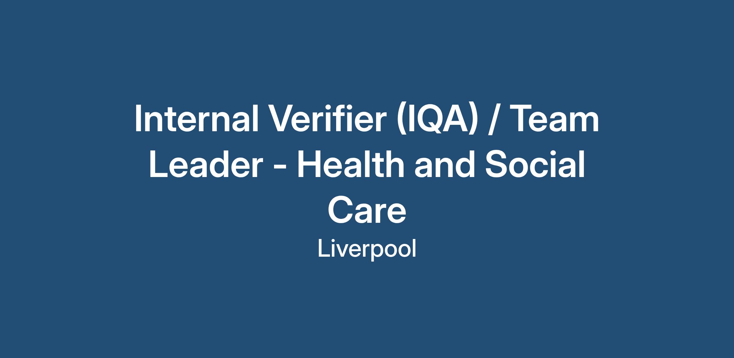 Job Title: Internal Verifier (IQA) / Team Leader - Health and Social Care