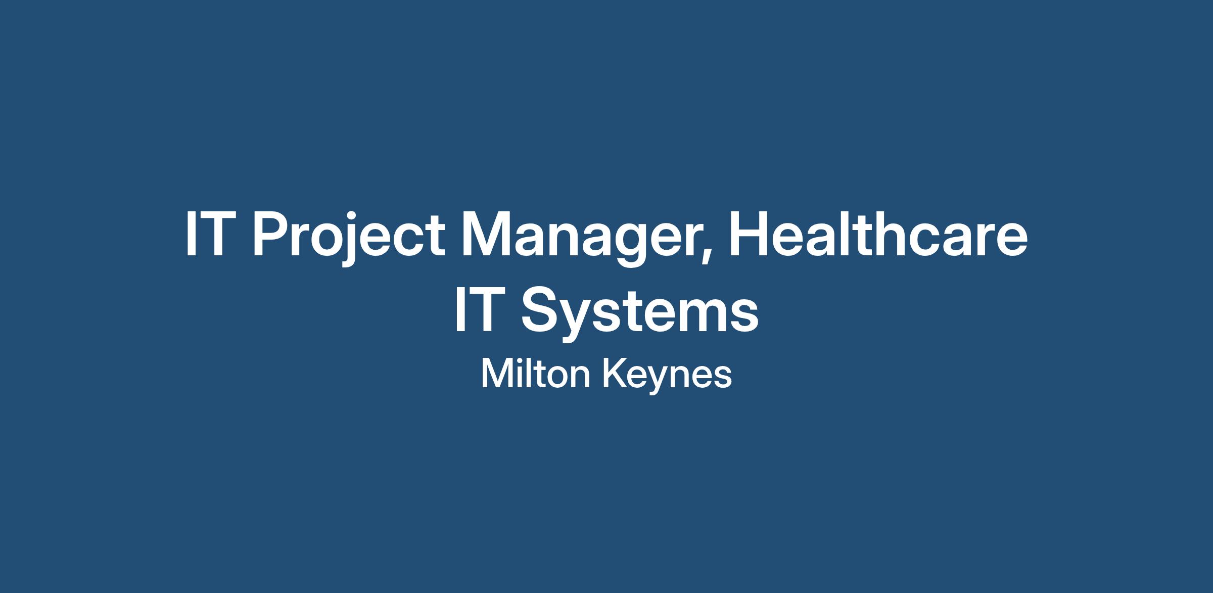 The Role - IT Project Manager, Healthcare IT Systems