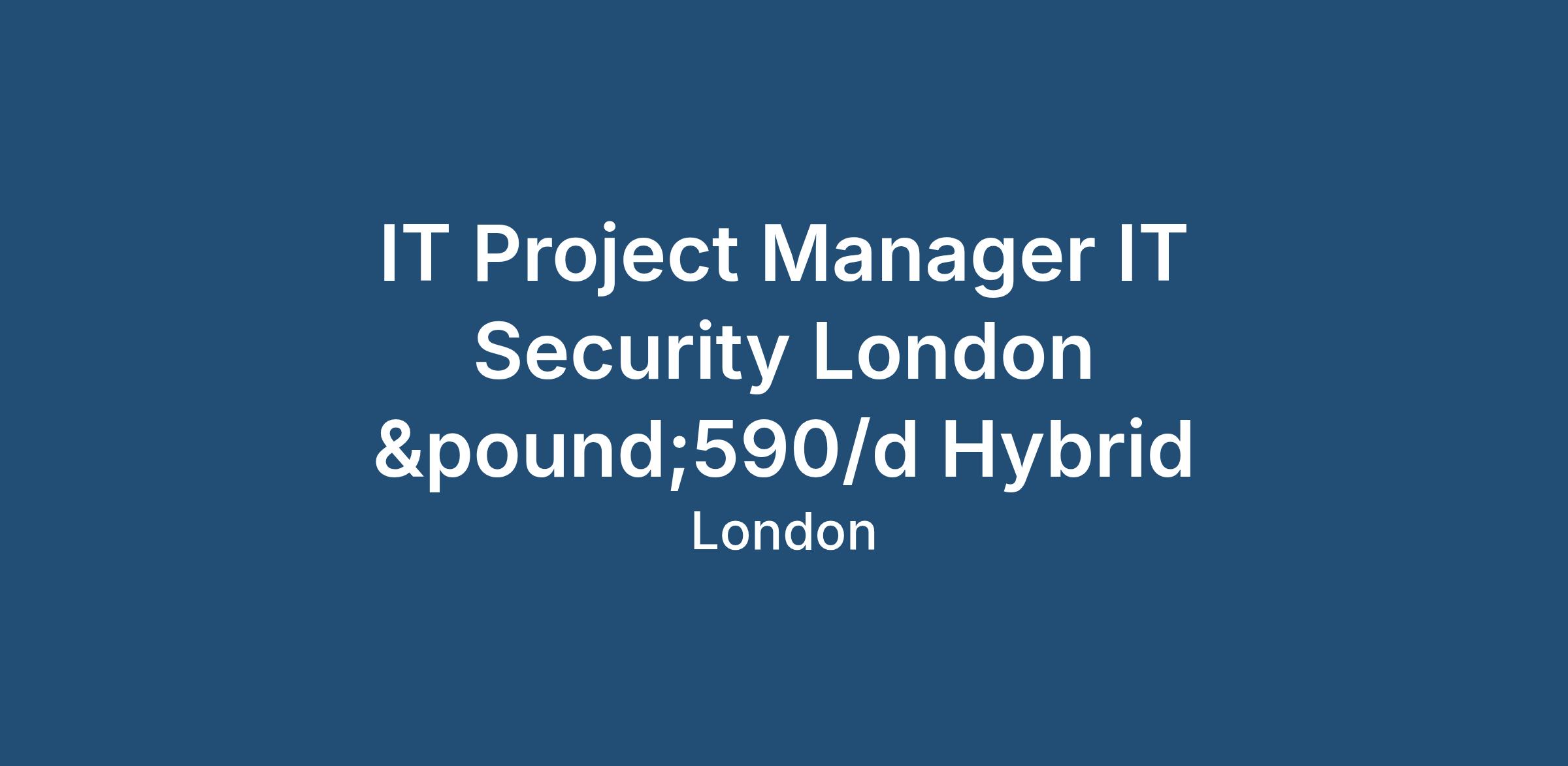 IT Project Manager IT Security London £590/d Hybrid