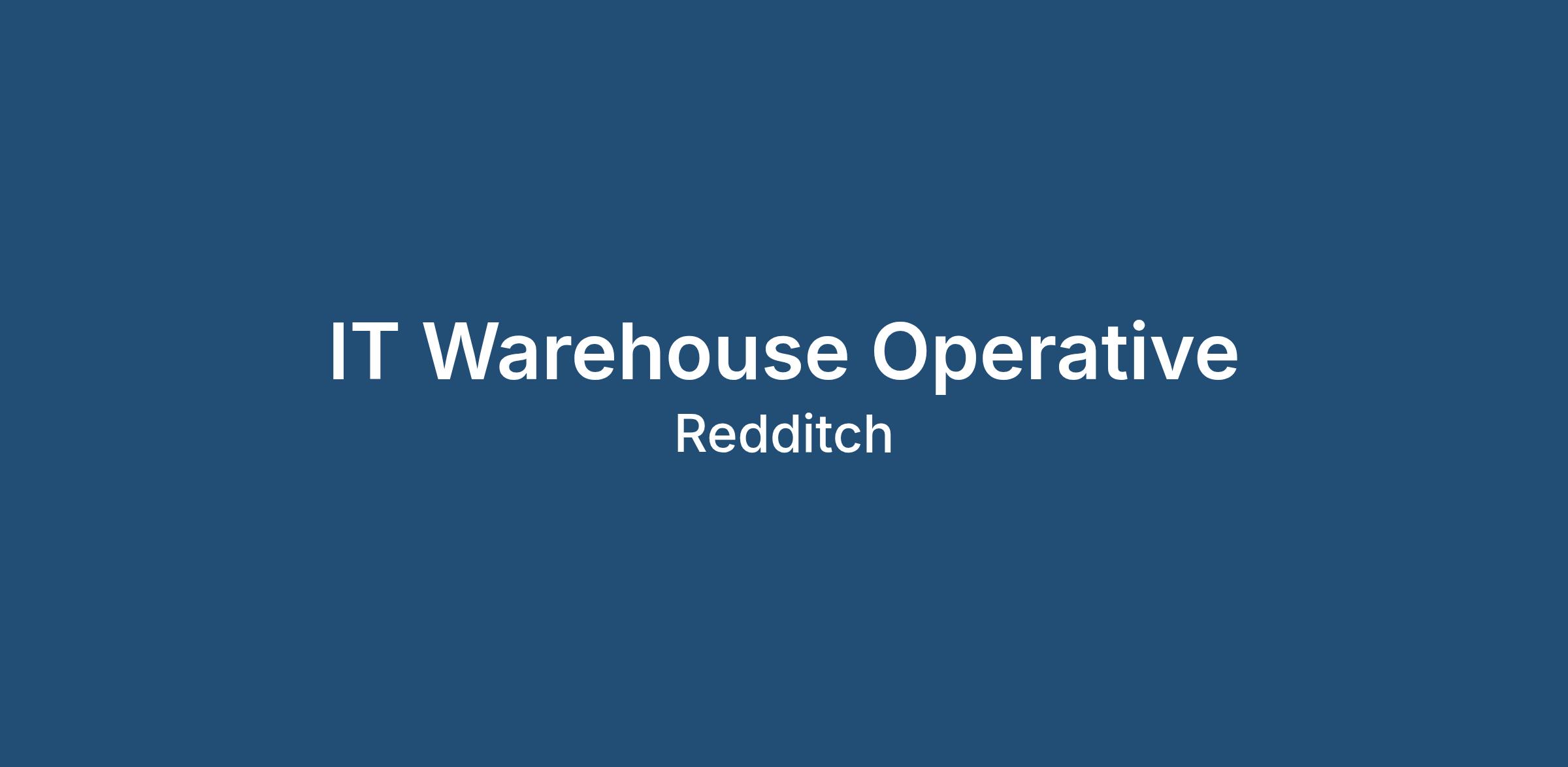 Leading IT Service Industry organisation (established 1996), specialising in Logistics and Asset Disposal, requires an IT Warehouse Operative to join their expanding team based in Redditch.