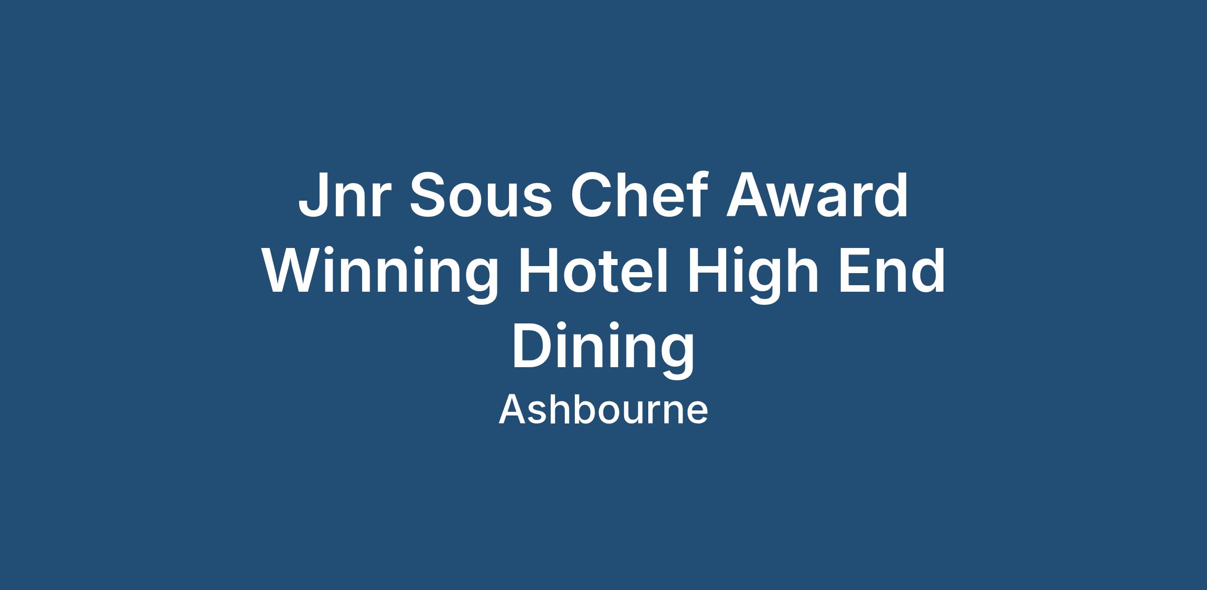 Jnr Sous Chef Award Winning Hotel High End Dining