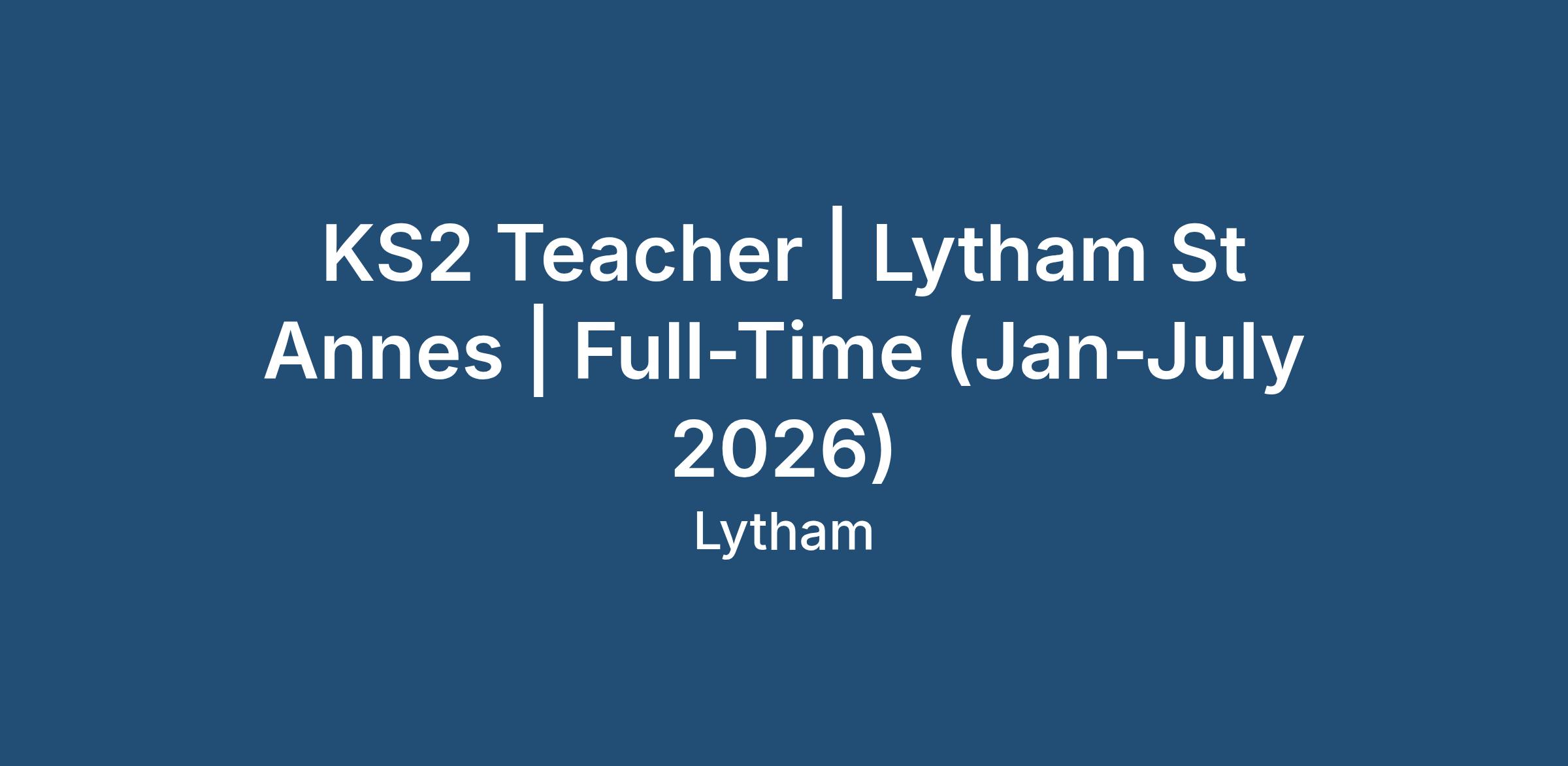 KS2 Teacher | Lytham St Annes | Full-Time | Jan Start - July 2026 | ECT Support Available | Competitive Pay