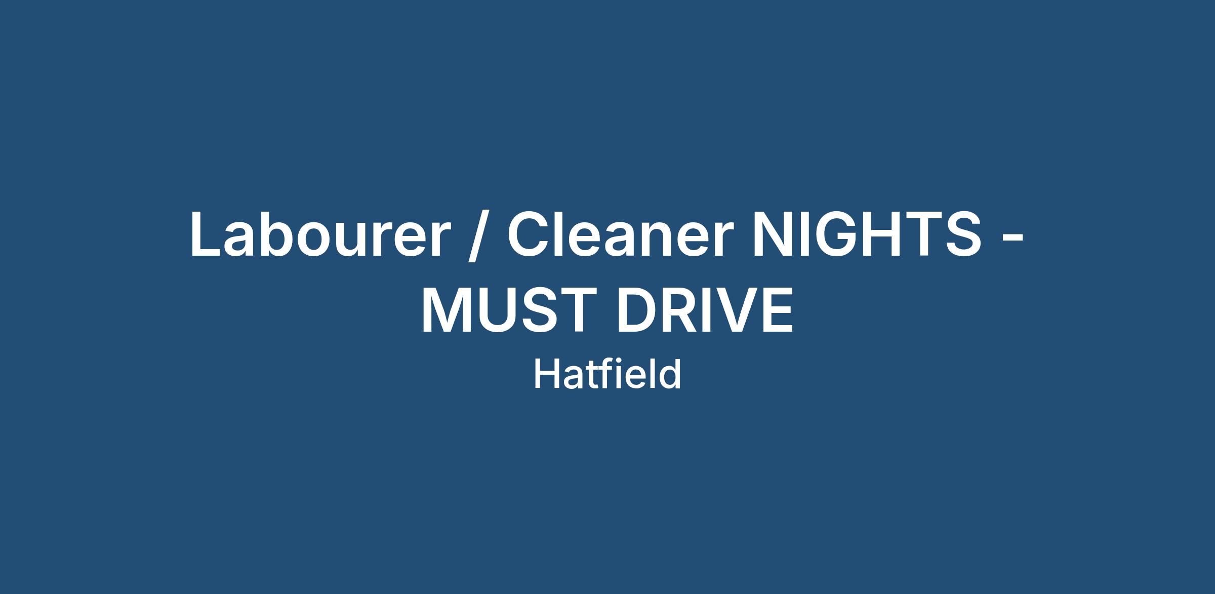 Labourer / Cleaner Nights - Must Drive - Hatfield