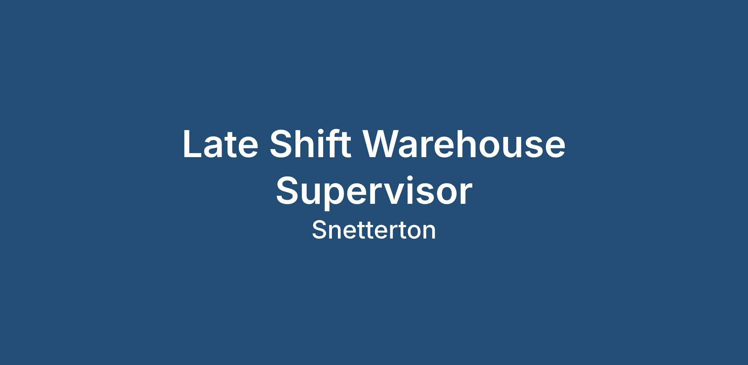 We are currently recruiting on behalf of a leading and prestigious manufacturing company based in Snetterton, Norfolk. Due to their continued growth and success they are seeking to employ a Late Shift Warehouse Supervisor.