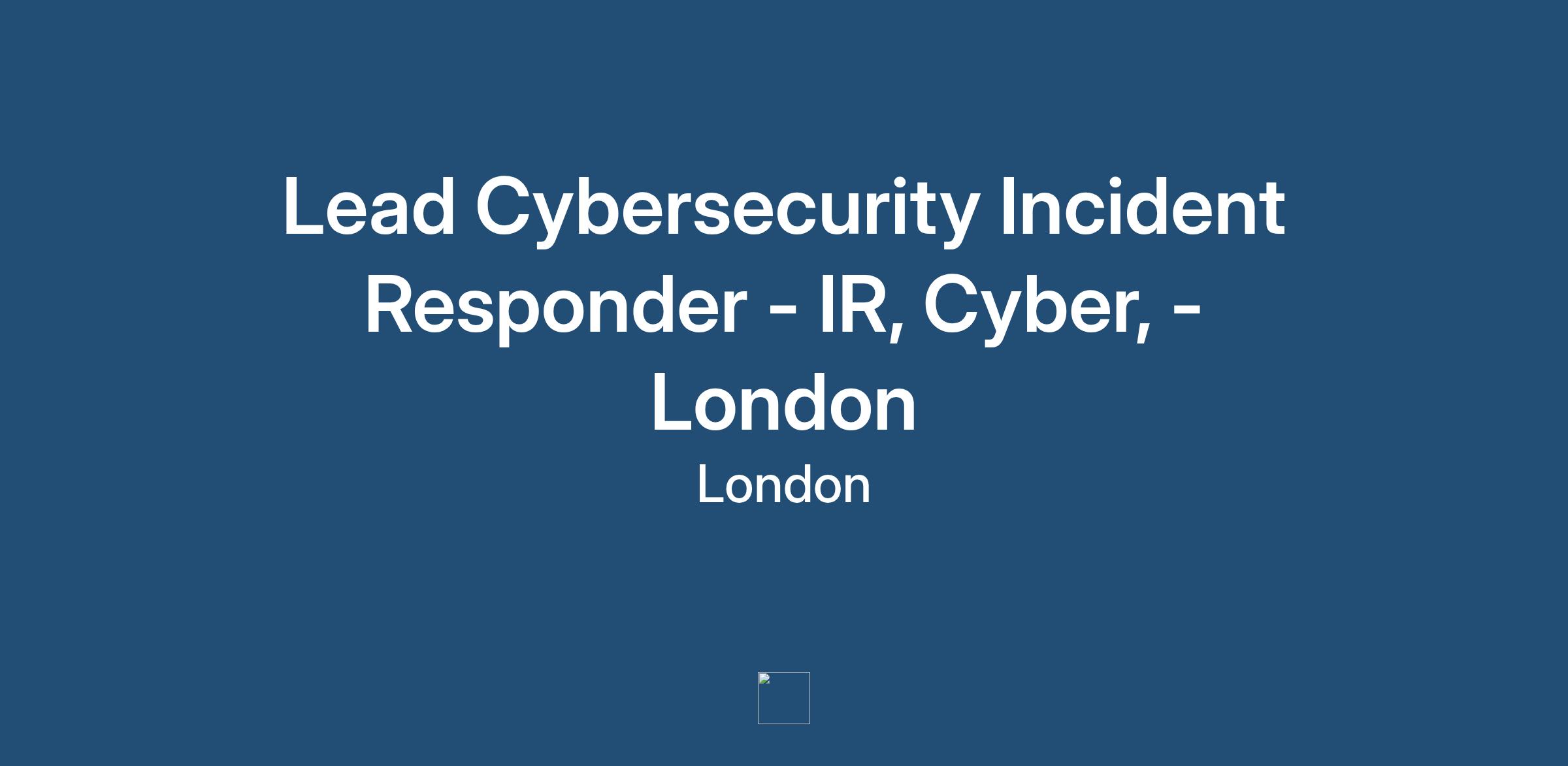 Lead Cybersecurity Incident Responder - IR, Cyber, - London