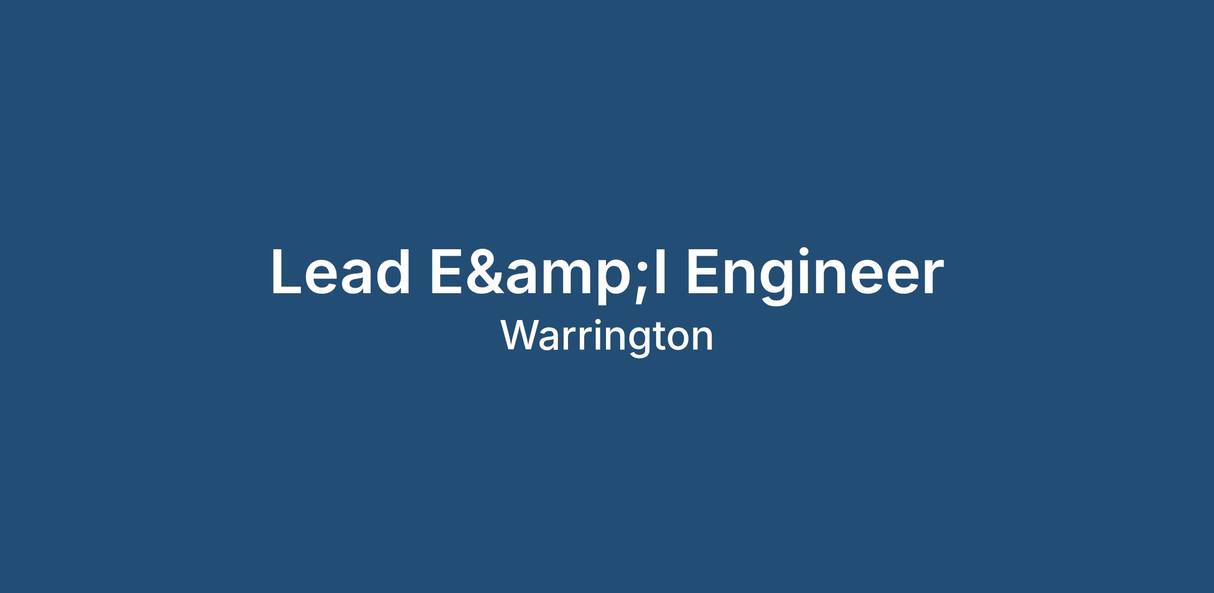 Lead Electrical & Instrumentation Engineer
