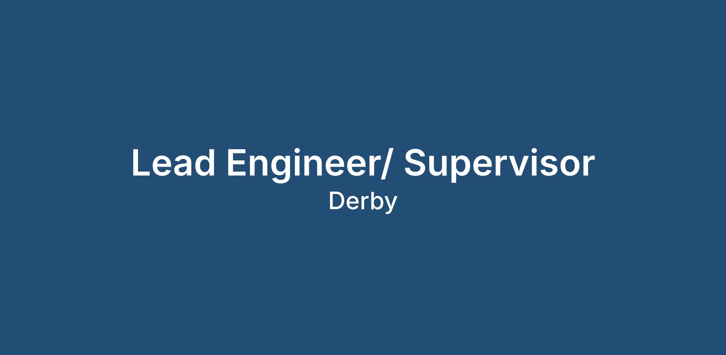 Job Title: Lead Engineer/ Supervisor