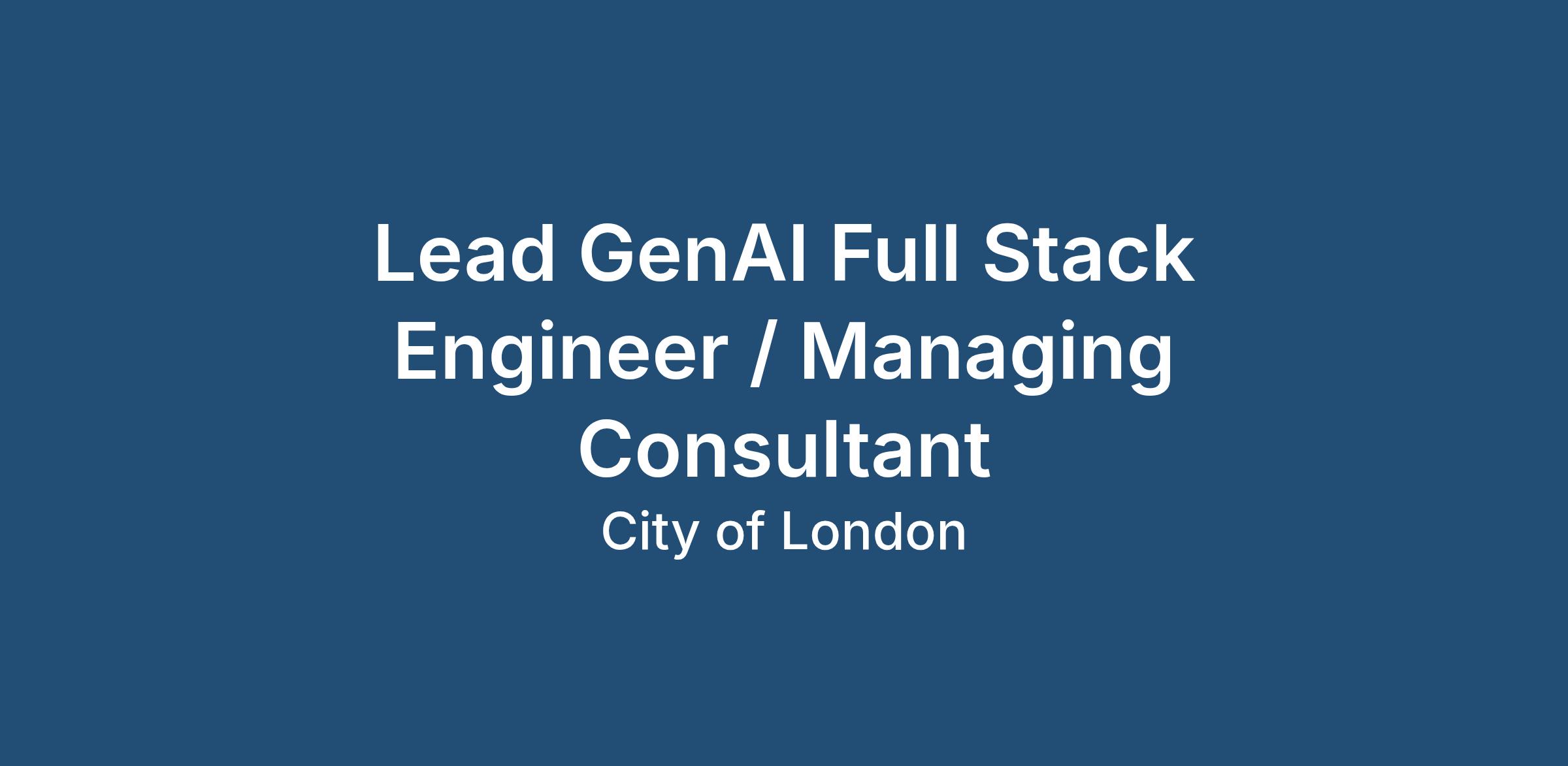 We're looking for a GenAI Full Stack Engineer who is passionate about solving real-world challenges through technology. You'll work closely with senior stakeholders both internally and within key clients to create GenAI strategies that translate business issues into relevant technical solutions and competitive propositions that are scalable, secure, and sustainable.