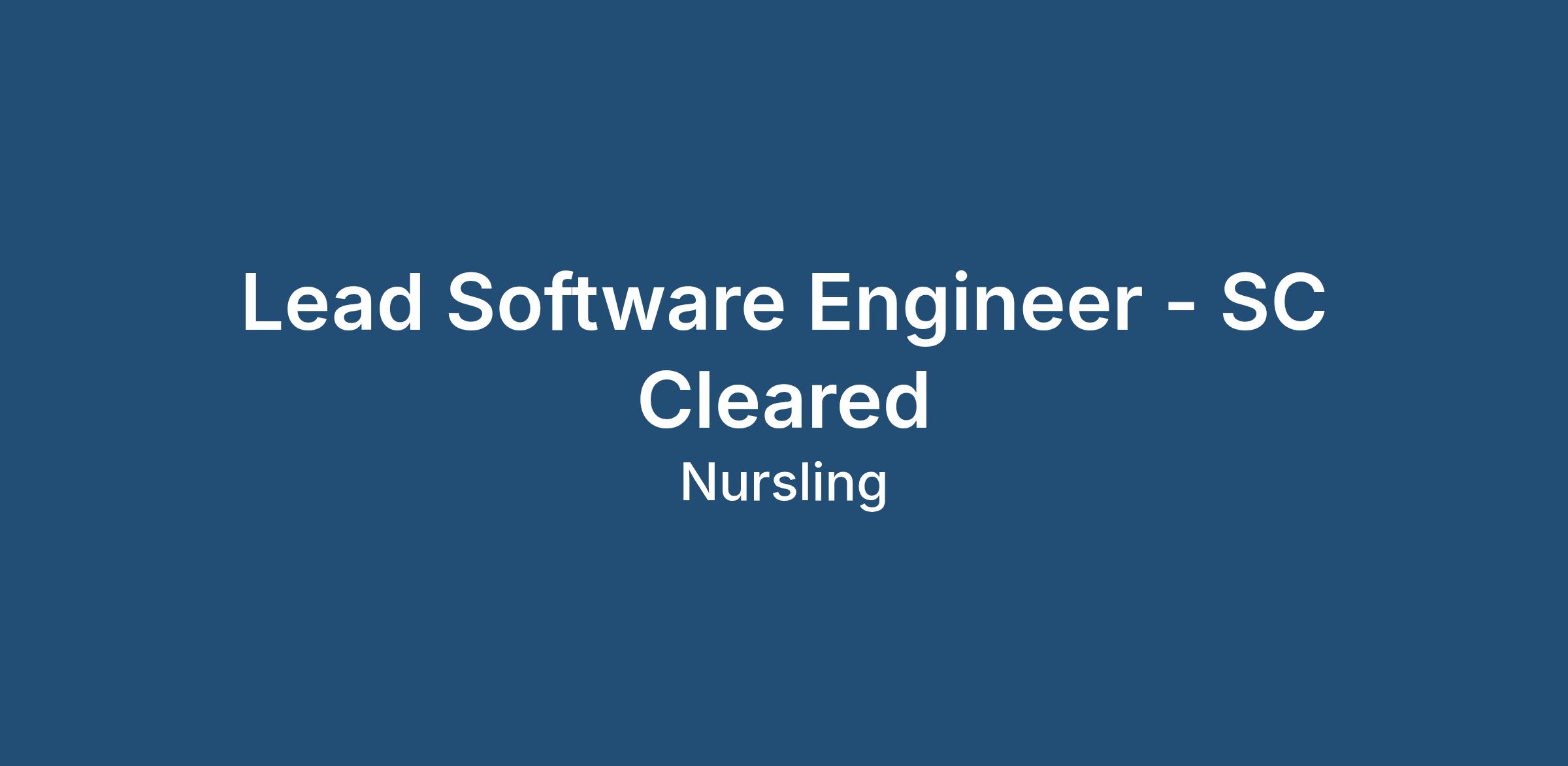 Lead Software Engineer - SC Cleared