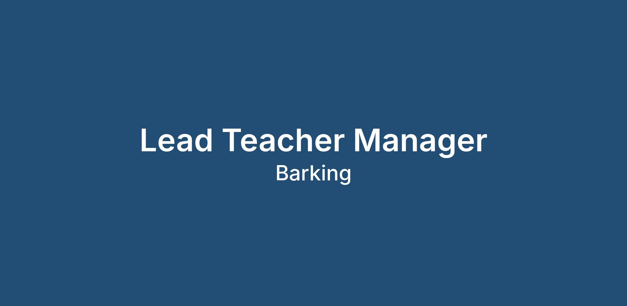Apply now to be considered for this Lead Teacher Manager opportunity in Barking