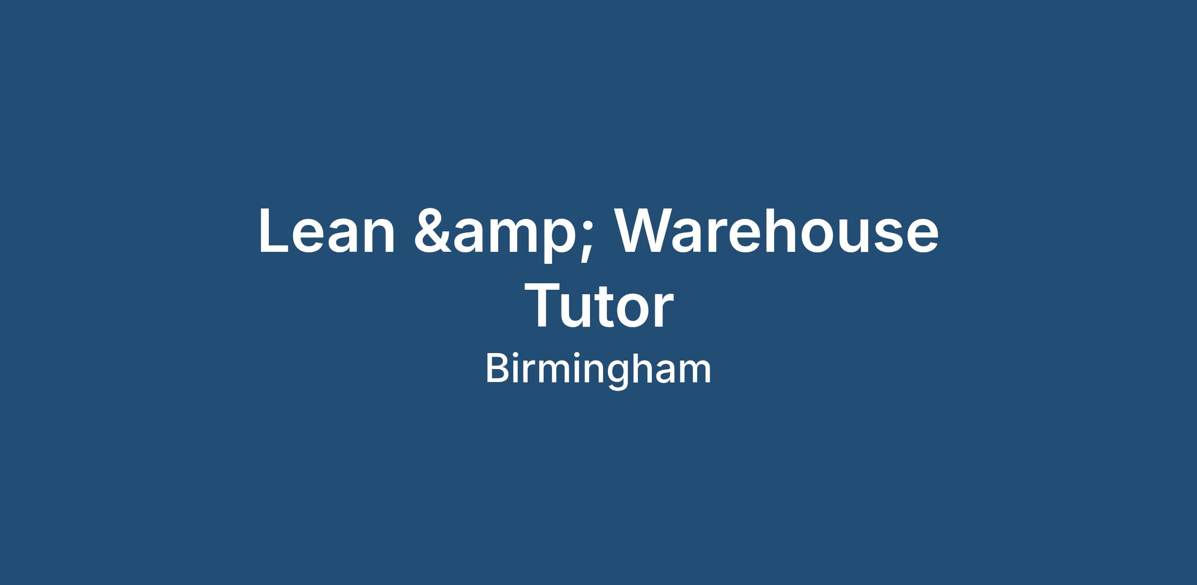 Apply today to learn more about this Lean & Warehouse Tutor opportunity in Birmingham and play a key role in helping learners develop the skills needed for successful careers in logistics and supply chain industries