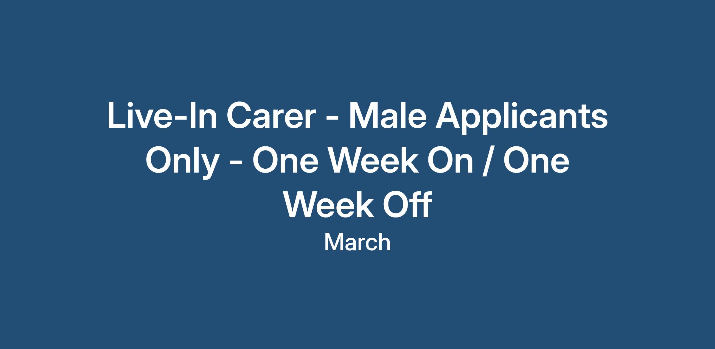 Live-In Carer - Male Applicants Only - One Week On / One Week Off