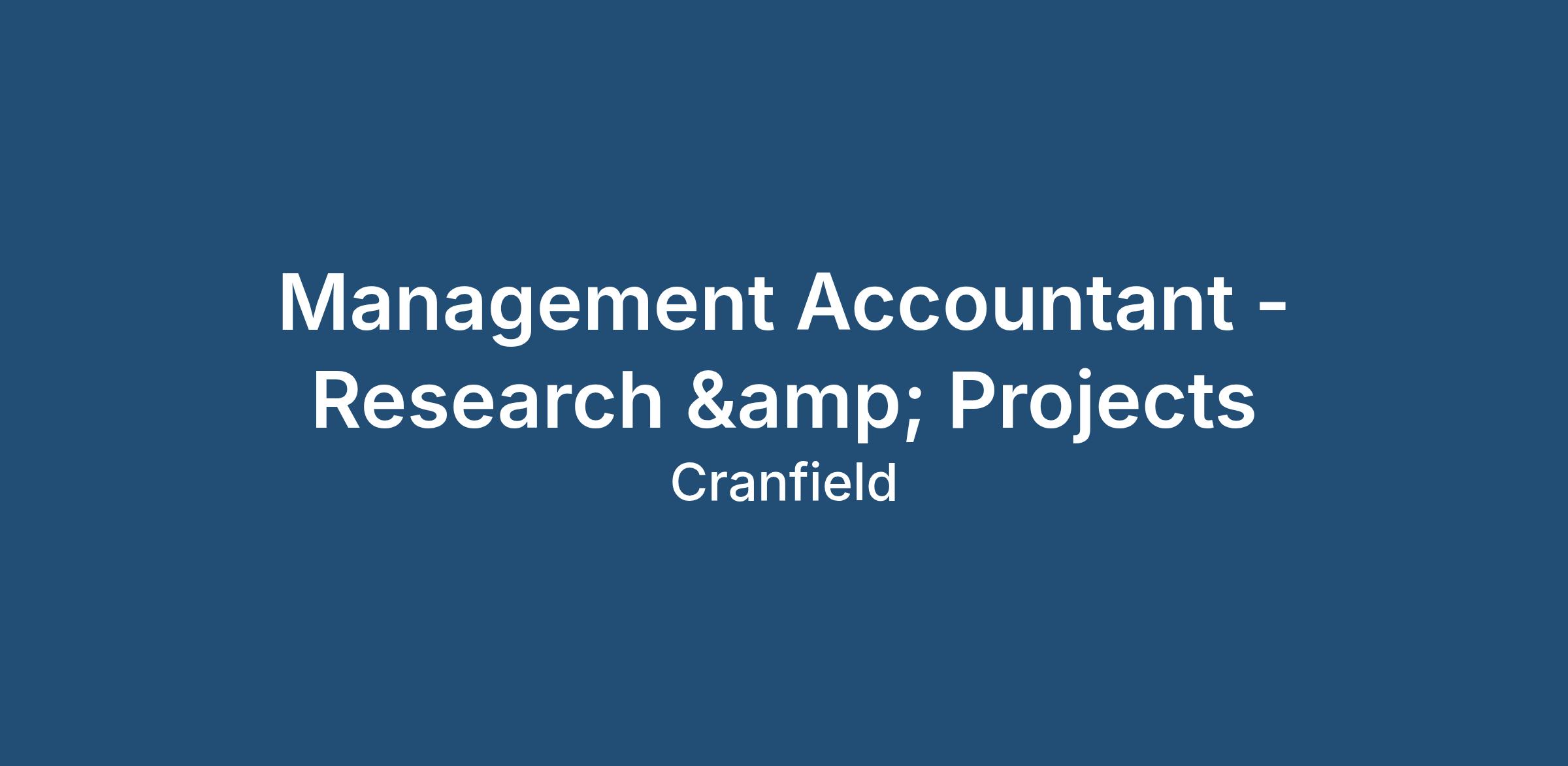 Management Accountant - Research & Projects