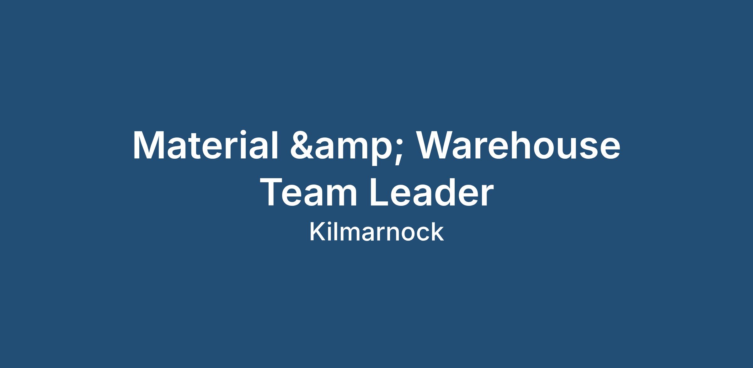 We are recruiting on behalf of a manufacturing business based in Ayrshire for an experienced Materials & Warehouse Team Leader to join their Supply Chain and Planning function.