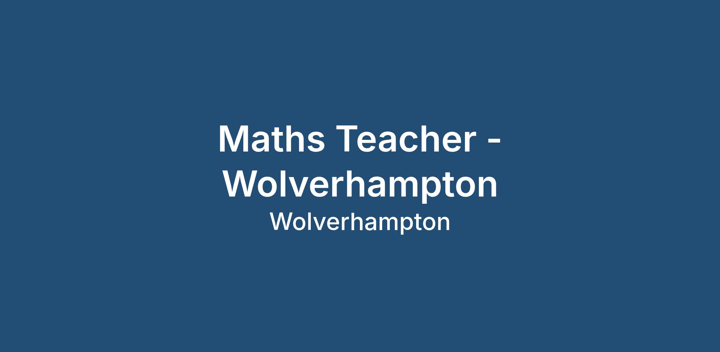 Maths Teacher - Secondary School - Wolverhampton