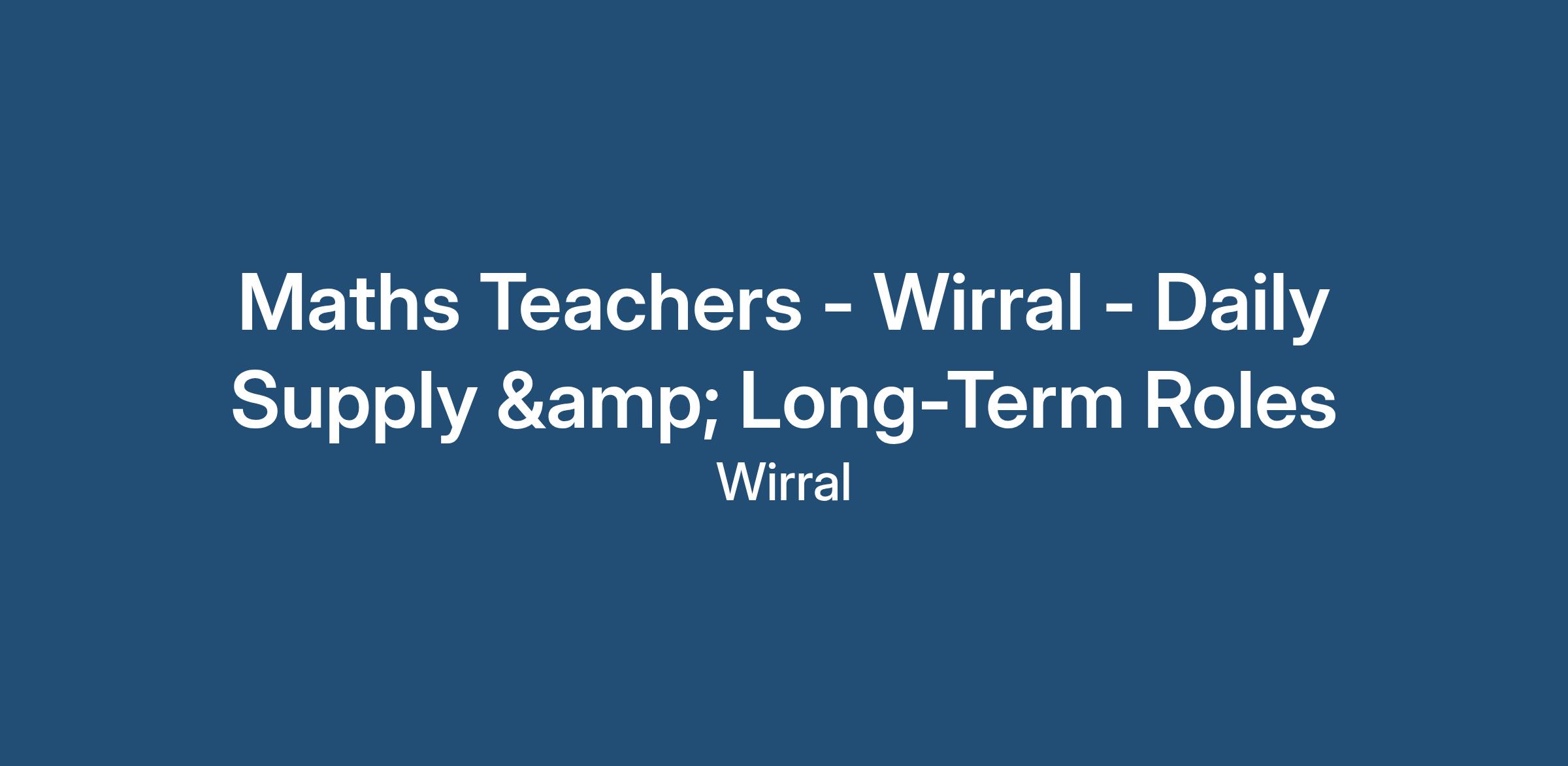 Maths Teachers - Wirral - Daily Supply & Long-Term Roles