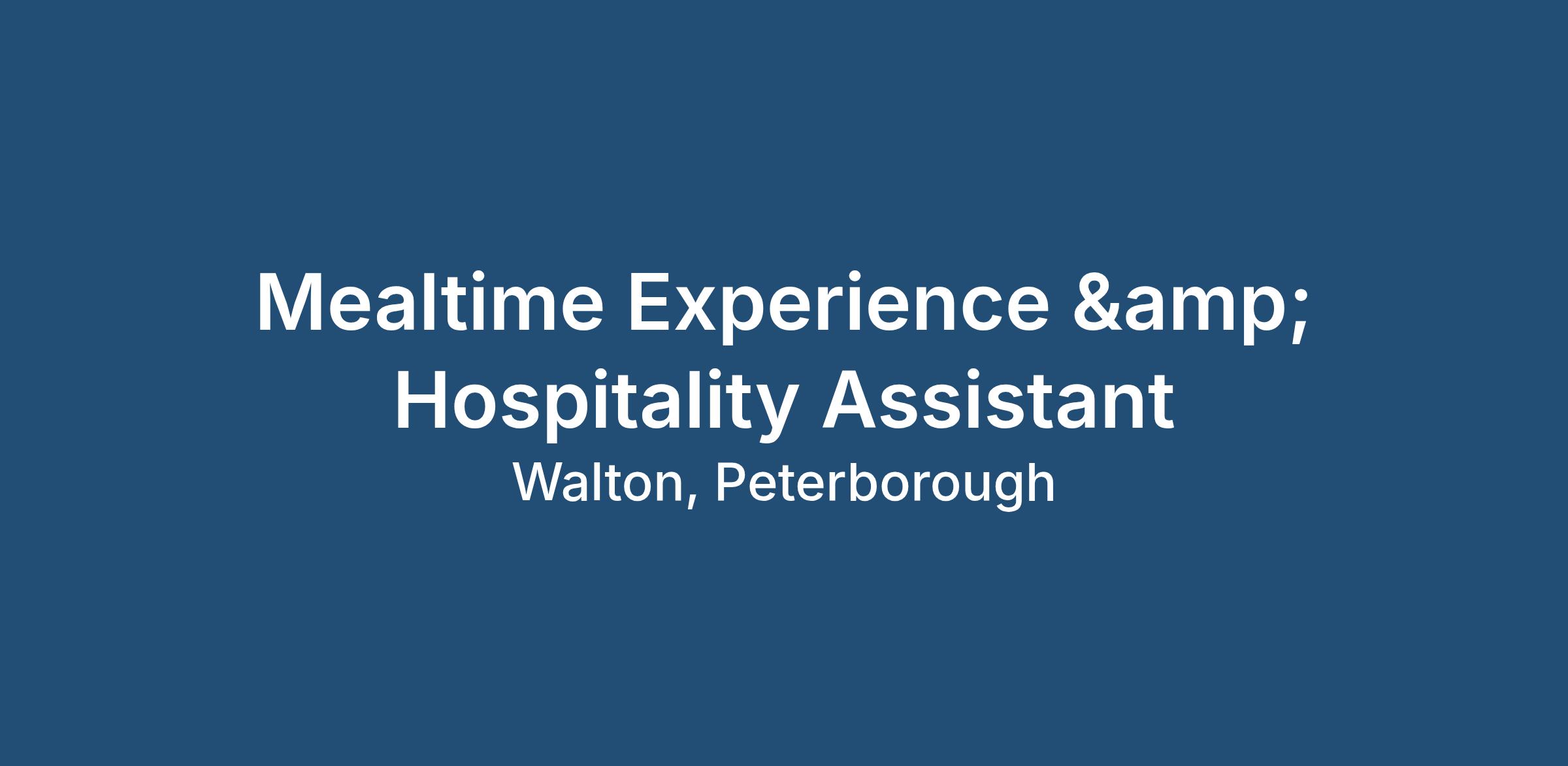 This role will be to work alongside the kitchen teams as well as another mealtime experience assistant in Eaglewood Centre in Peterborough as assisting where the business requires you.