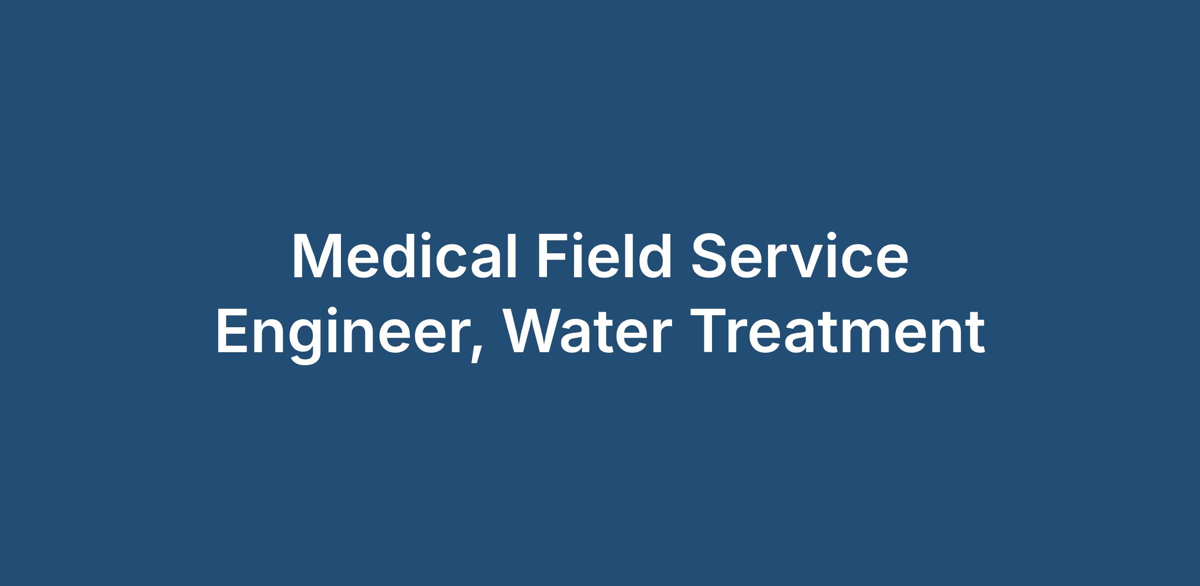 Medical Field Service Engineer, Water Treatment