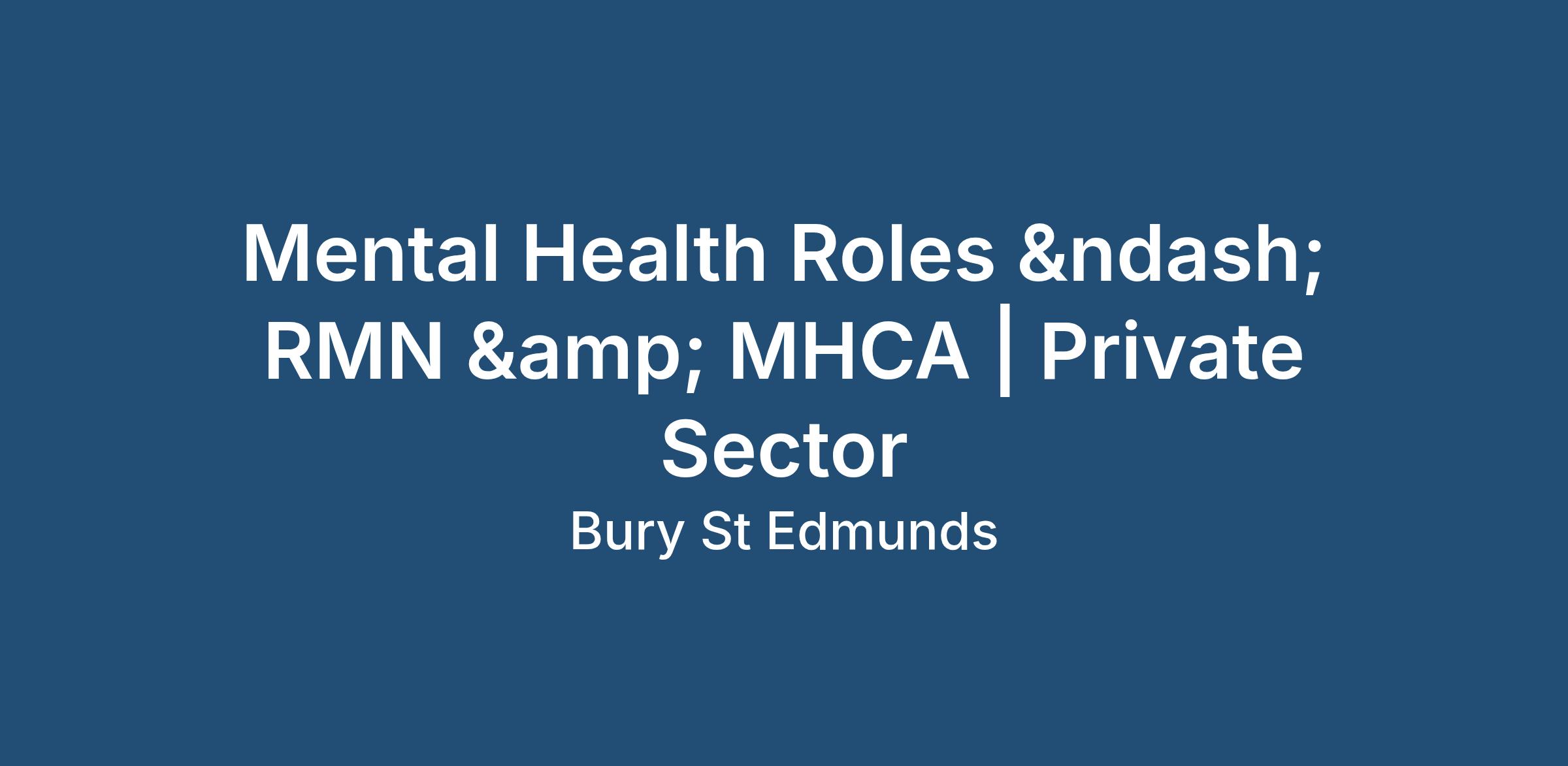 Mental Health Roles – RMN & MHCA | Private Sector