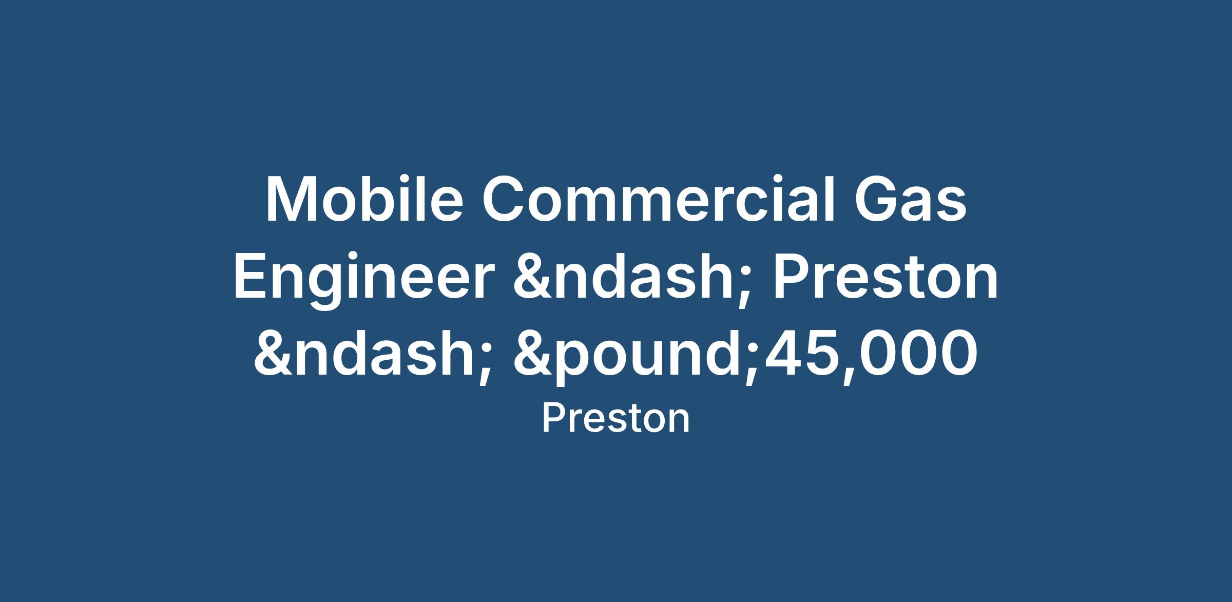 Mobile Commercial Gas Engineer – Preston – £45,000
