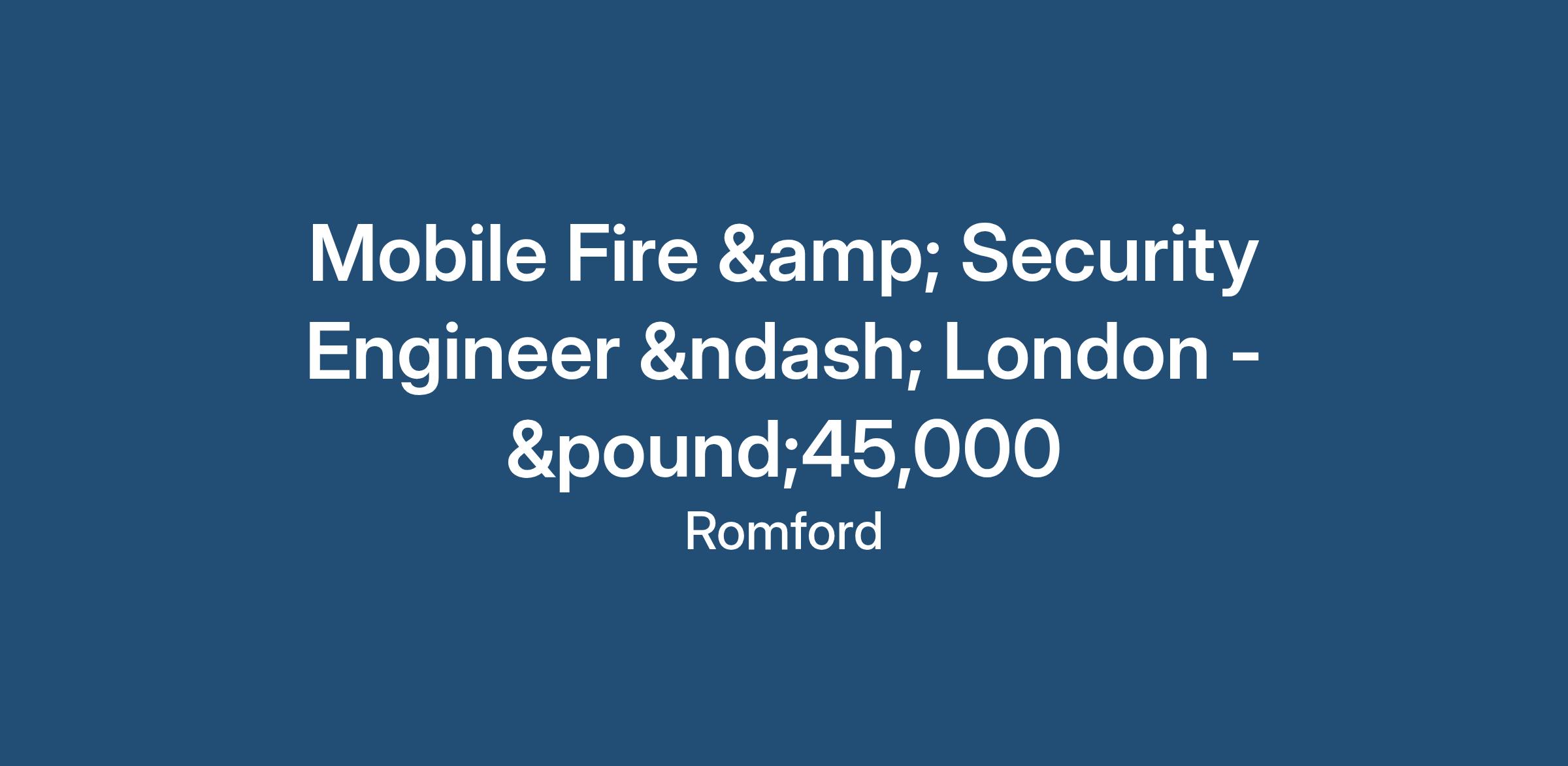 Mobile Fire & Security Engineer – London - £45,000