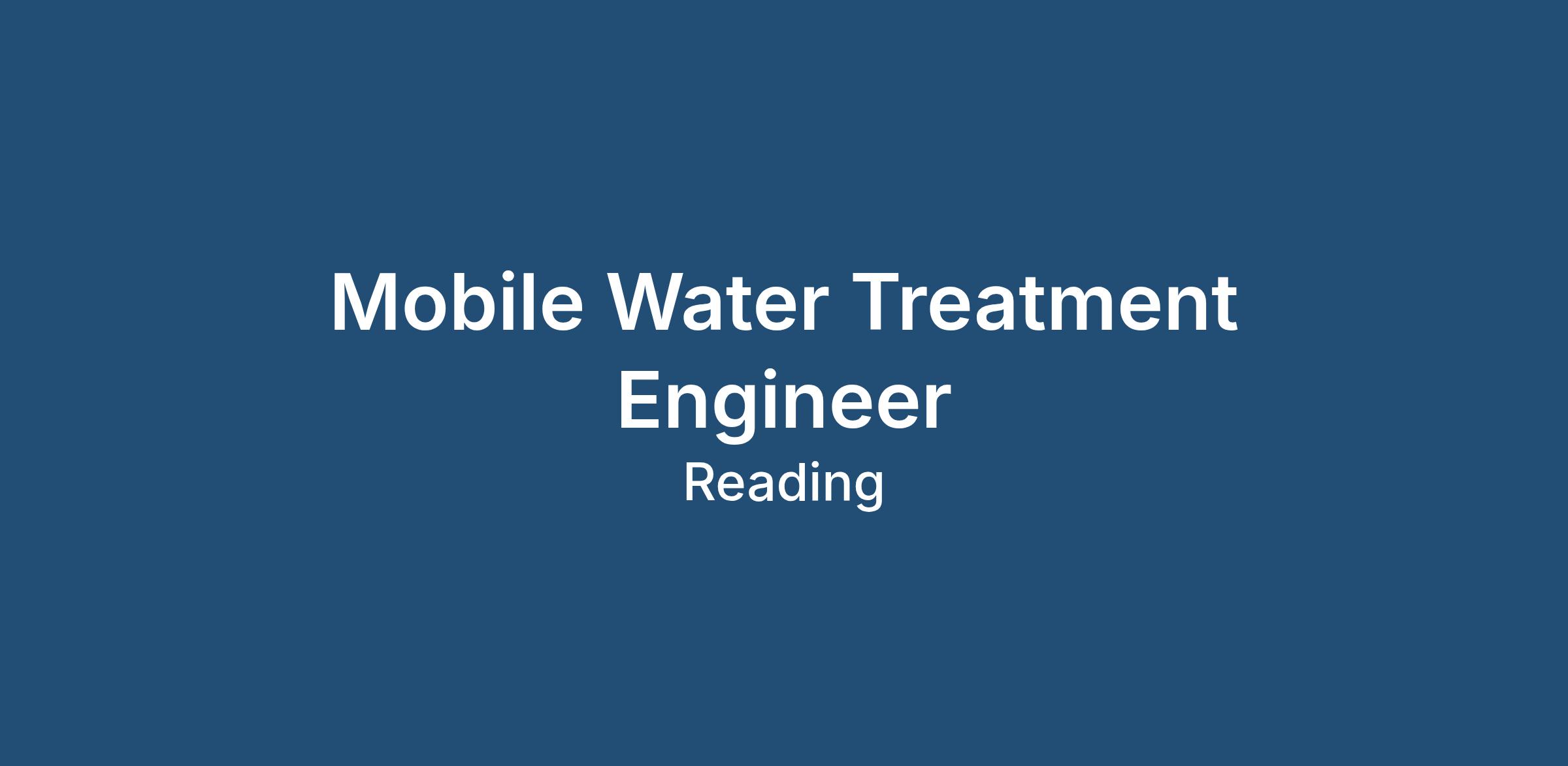 What experience you need to be the successful Mobile Water Treatment Engineer: