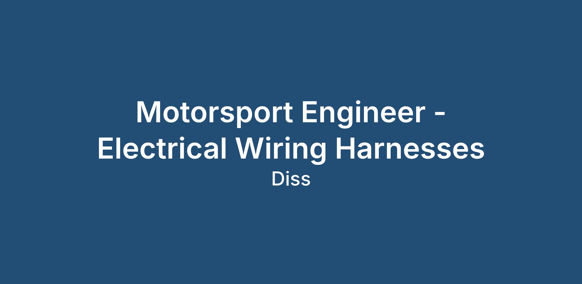 Motorsport Engineer - Electrical Wiring Harnesses required. Our client is a well-established motorsport company based in Diss, Norfolk. Due to continued success, they are seeking an experienced Motorsport Engineer with the ability to fault find and test motor vehicle electrical systems.