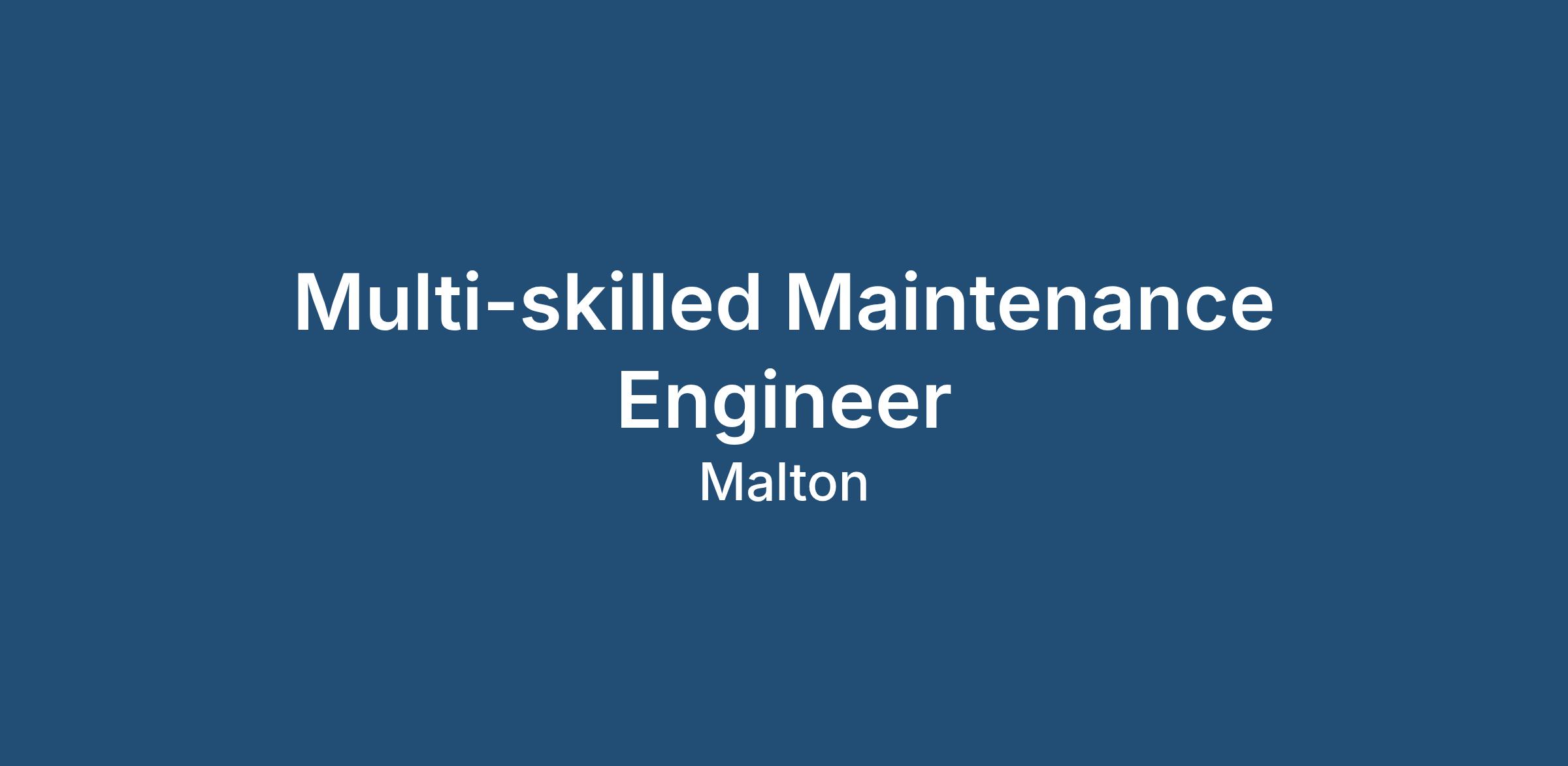 If you’re a Multi-Skilled Maintenance Engineer looking for your next challenge in Malton, apply today to secure your place in this thriving team