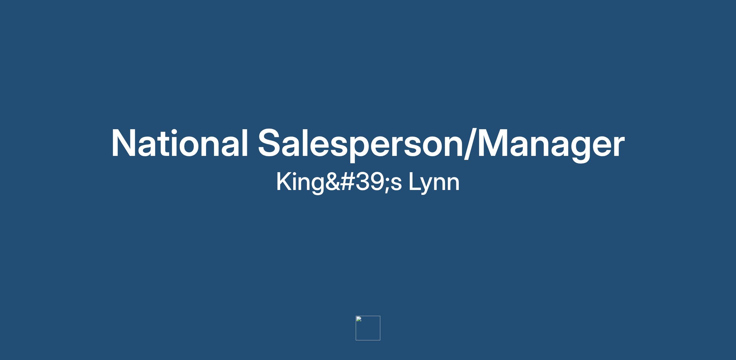 * National Salesperson/Manager – Travel within the UK as deemed necessary.