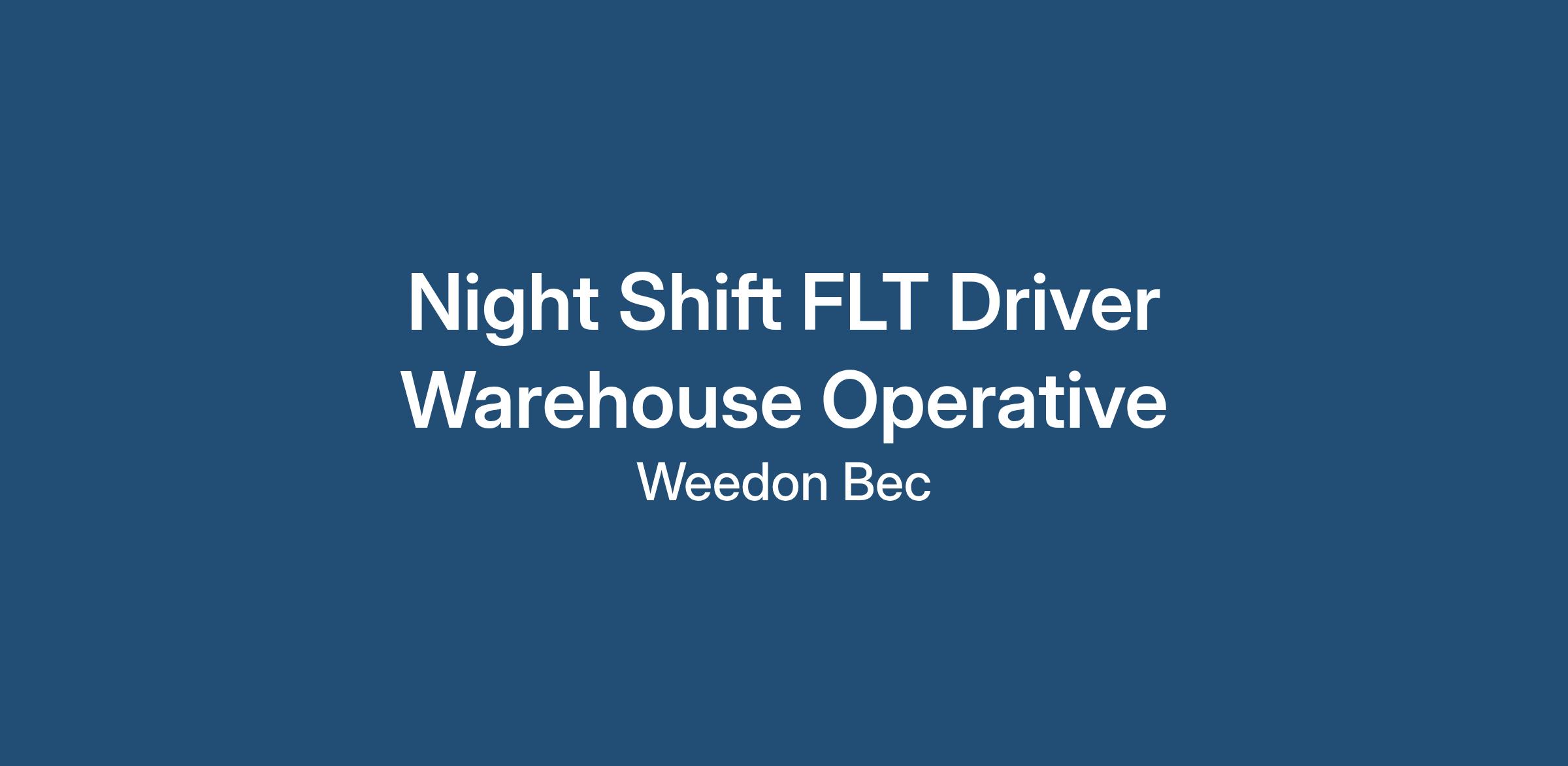 My client is seeking a reliable and hard-working Night Shift FLT Counterbalance Driver to join their Night Shift team in Weedon Bec.