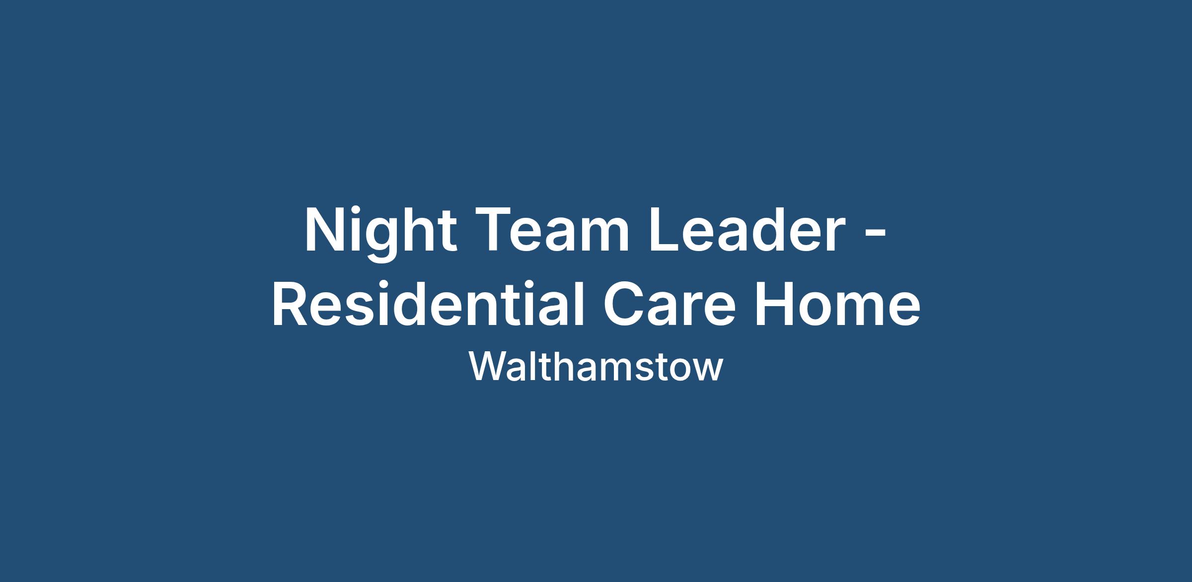 Nocturnal Recruitment Solutions are currently seeking an experienced Night Team Leader to work ongoing night shifts within a residential care home in East London.