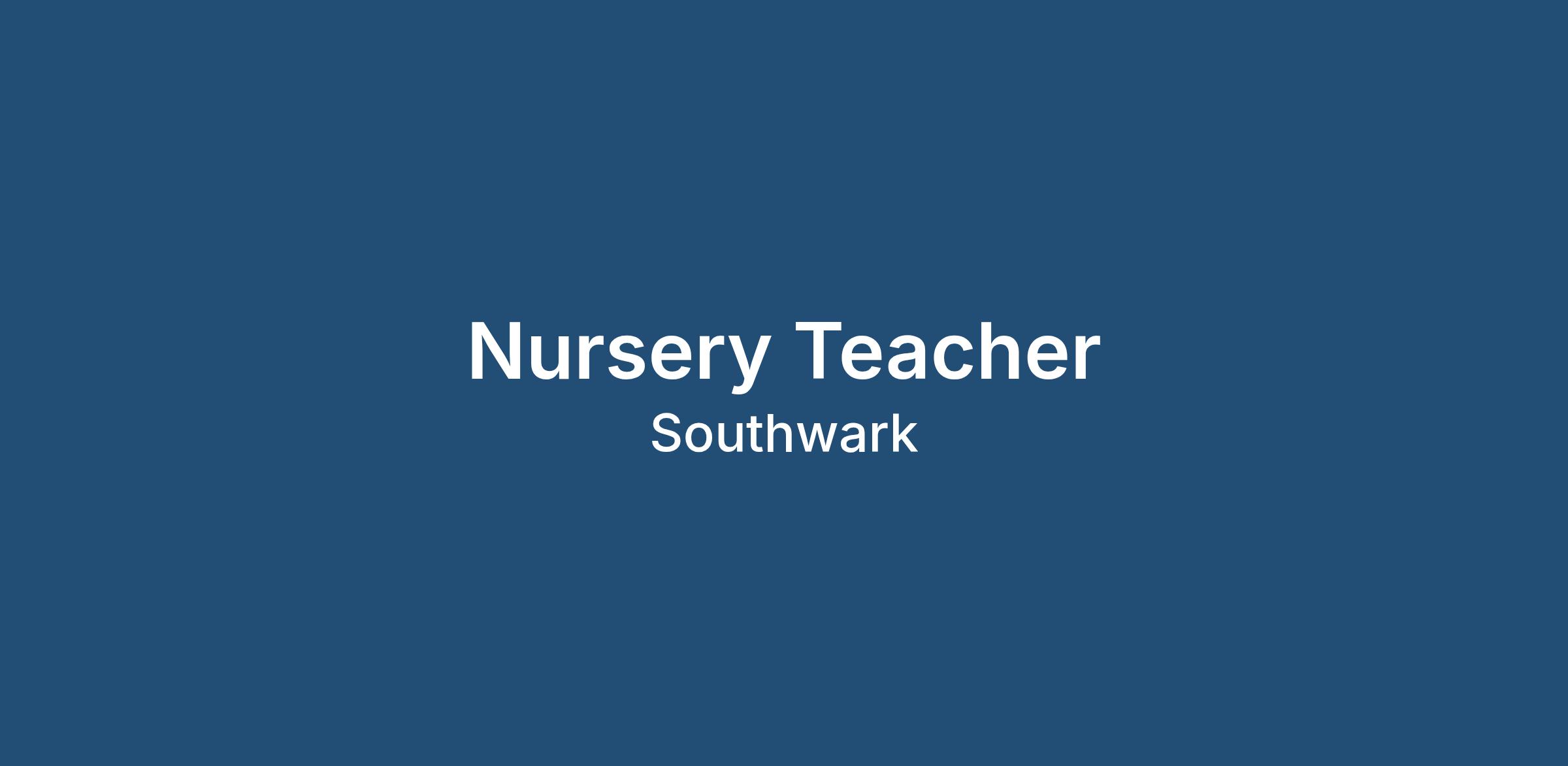 * Nursery Teacher required in Southwark