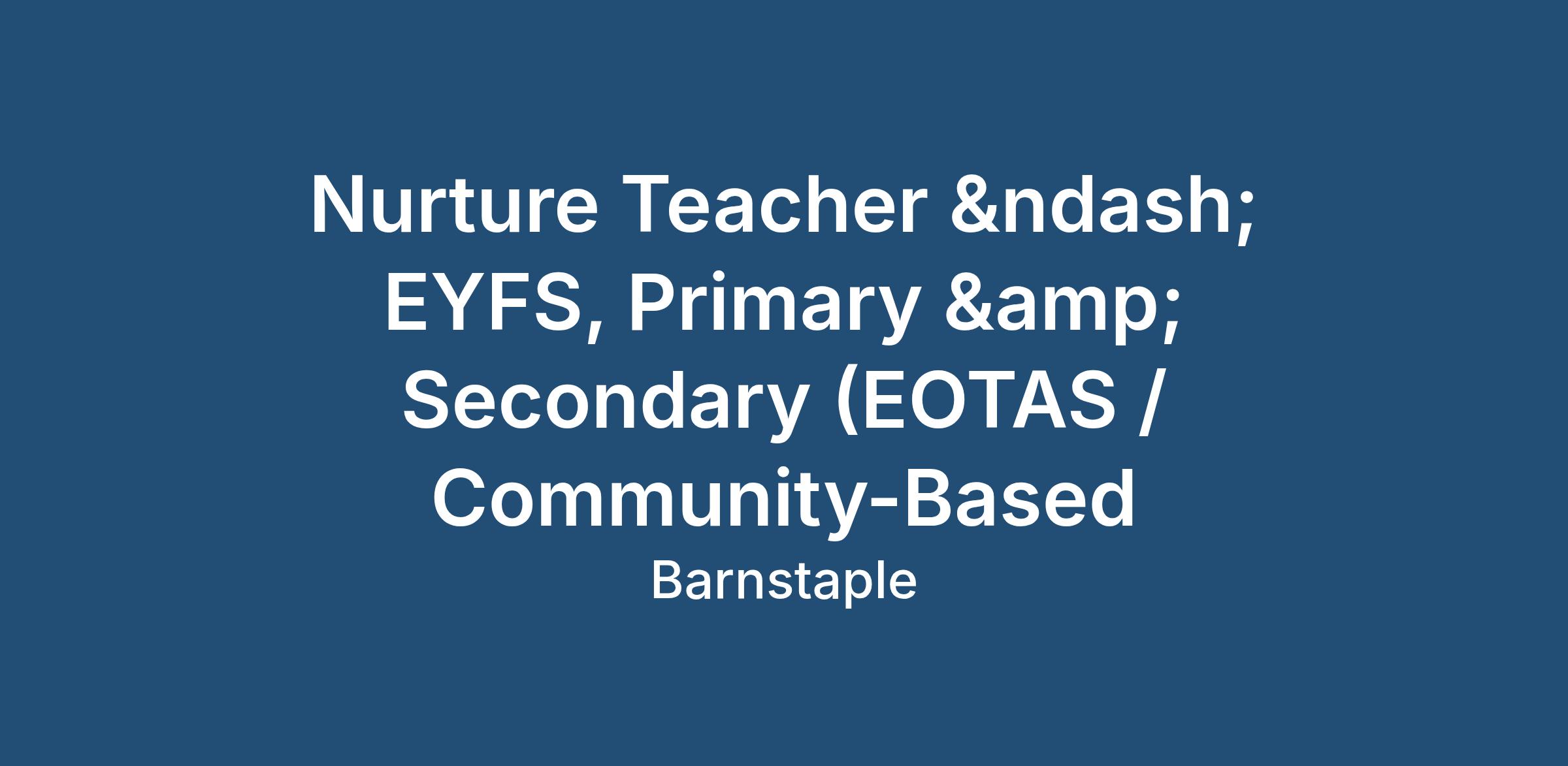 Nurture Teacher – EYFS, Primary & Secondary (EOTAS / Community-Based)