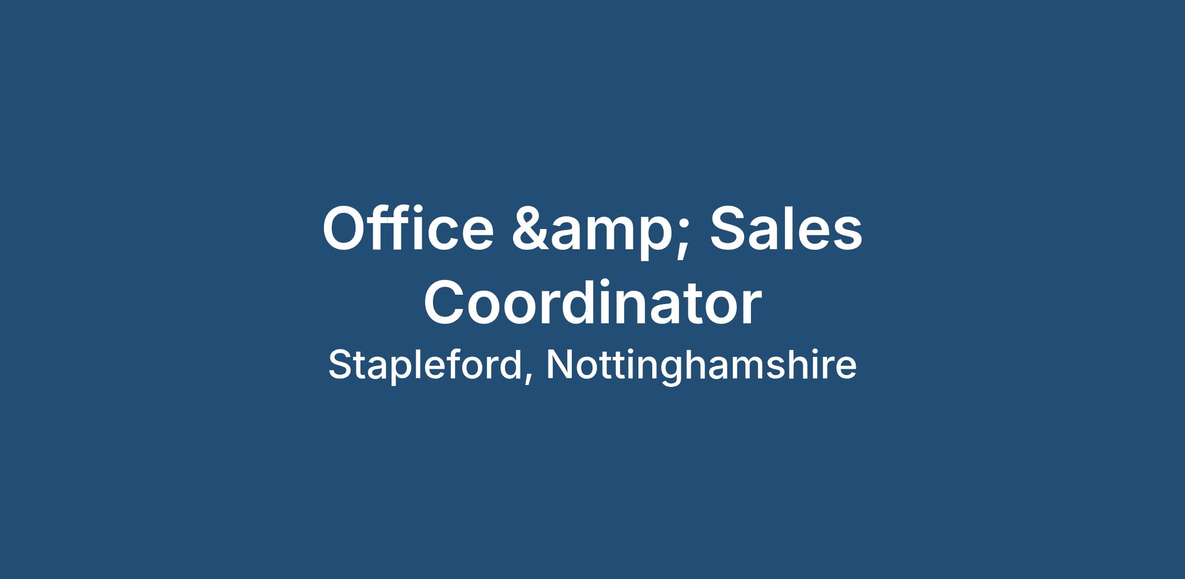 An established, market‑leading manufacturer is seeking an organised and proactive Sales & Office Coordinator to join its Nottingham site.