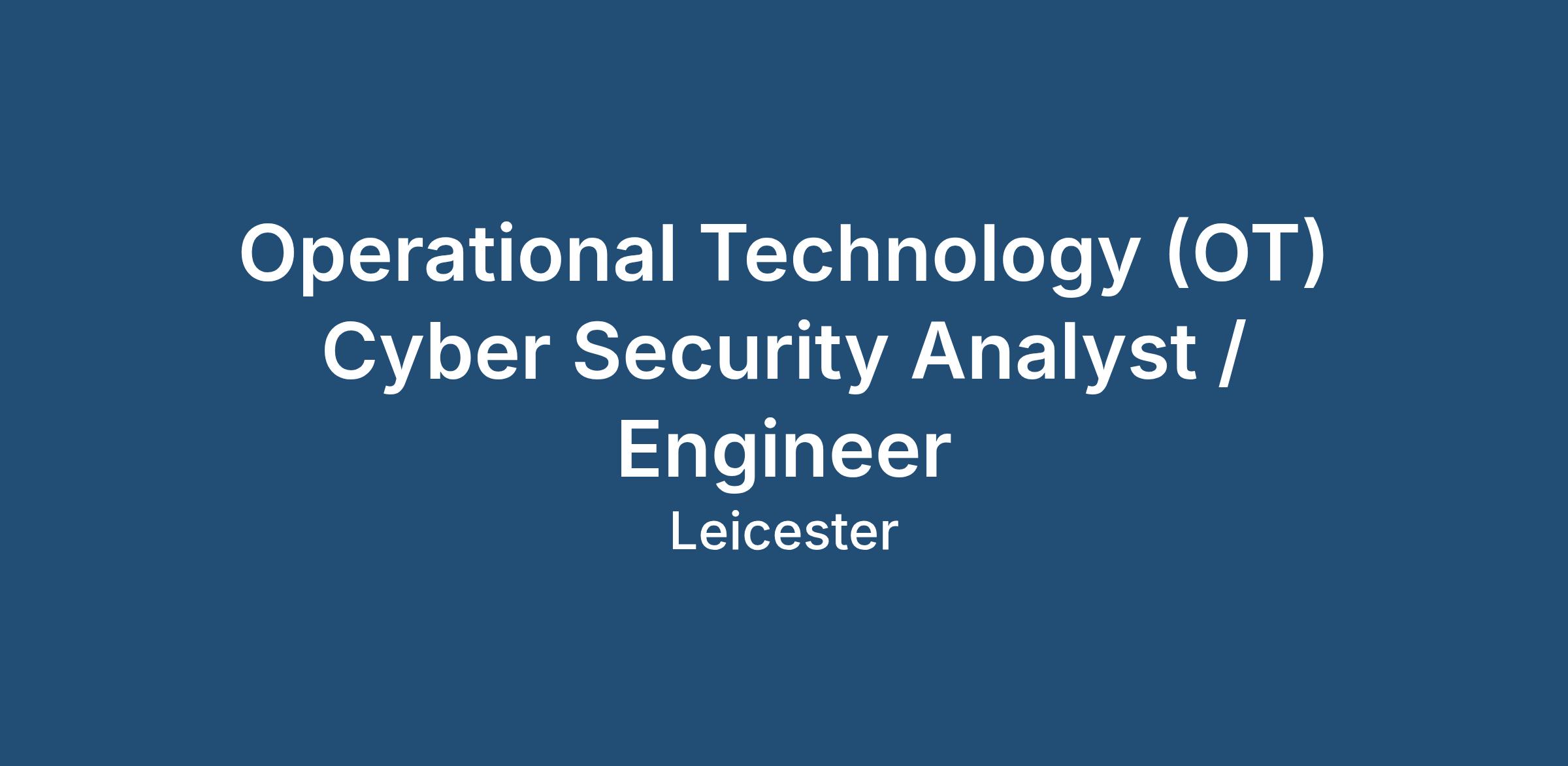 Graduate Operational Technology (OT) Cyber Security Analyst / Engineer