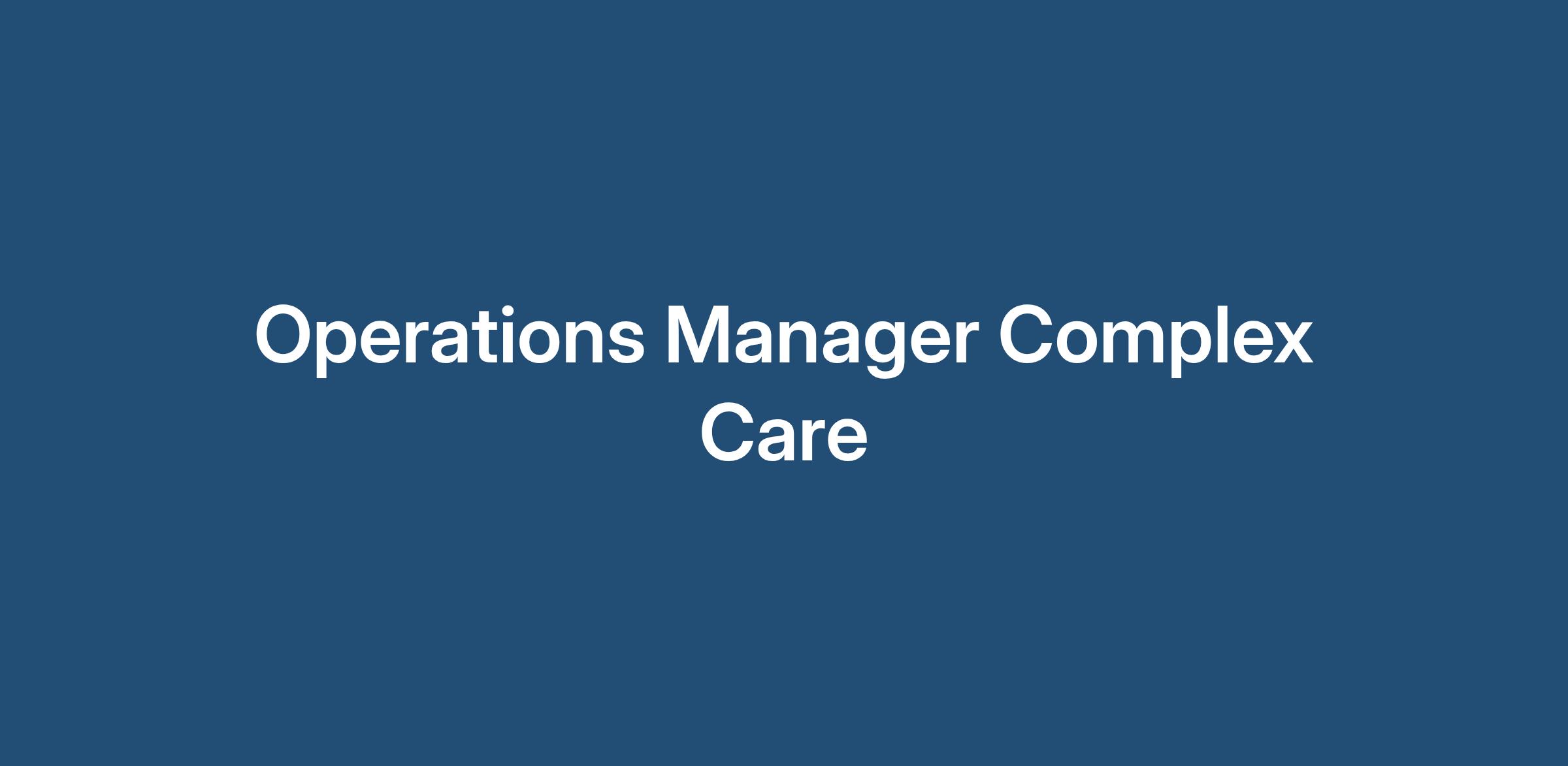 OPERATIONS MANAGER – COMPLEX CARE