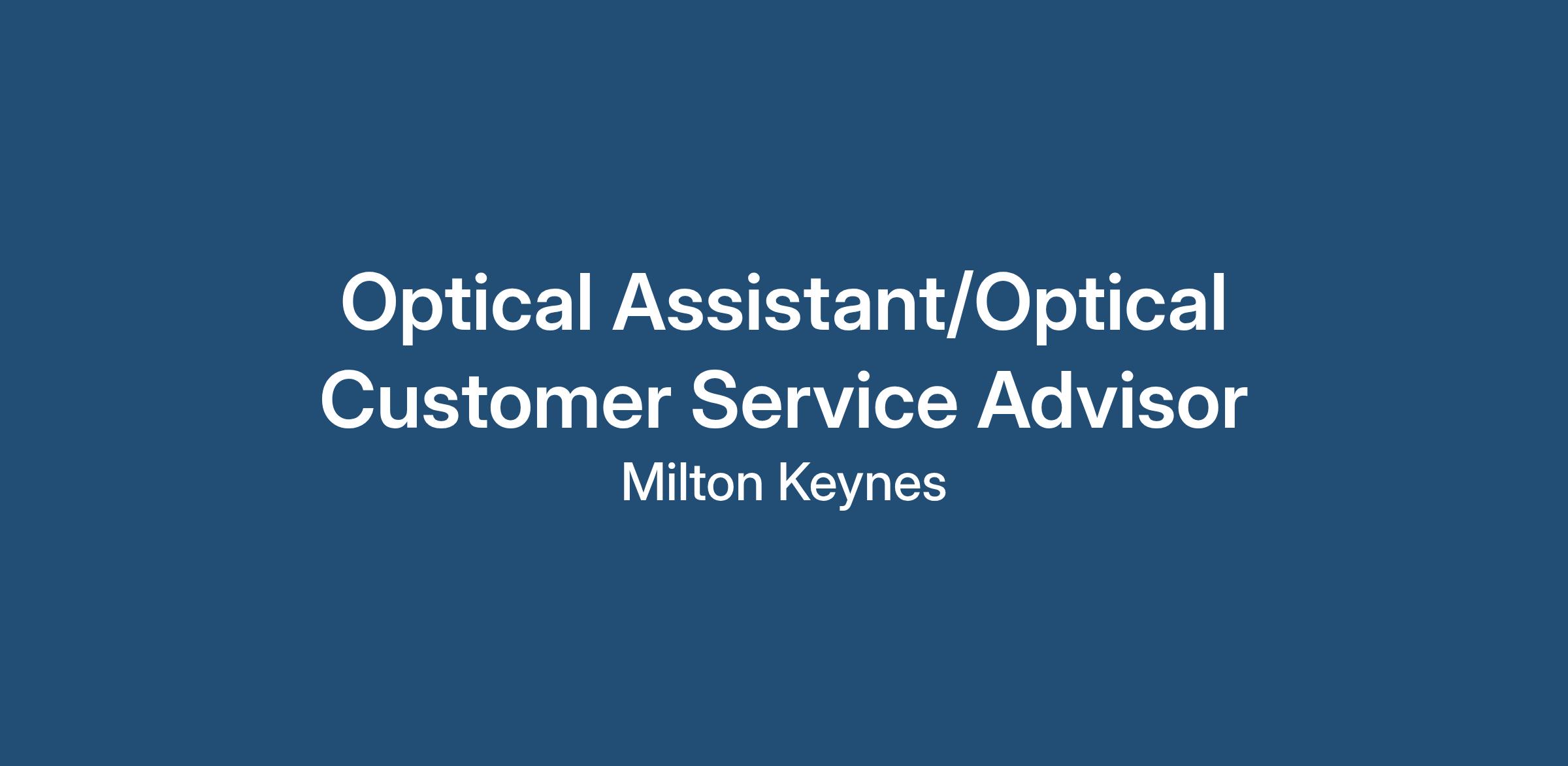 Optical Assistant / Optical Customer Service Advisor - Milton Keynes