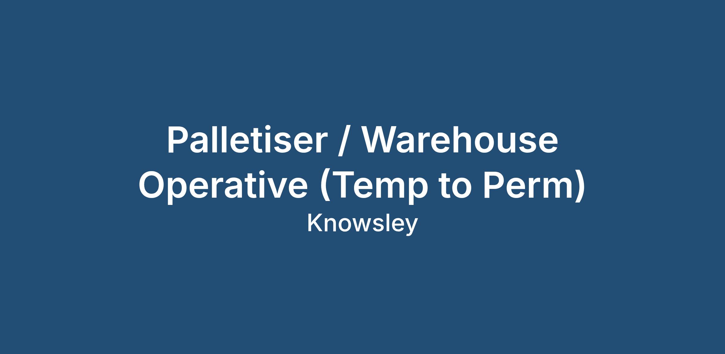 We are currently recruiting on behalf of our client for a Palletiser / Warehouse Operative to join a busy warehouse operating in a fast-paced environment. This is a temp-to-perm opportunity for a reliable and hardworking candidate who can work efficiently as part of a team.