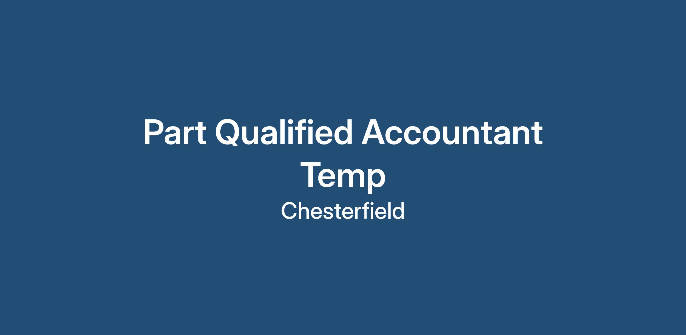Work in a professional and supportive environment in Chesterfield.This is a fantastic opportunity for a Part Qualified Accountant Temp to make a meaningful contribution within the accounting and finance department. If you are ready to take on this temporary role, we encourage you to apply today