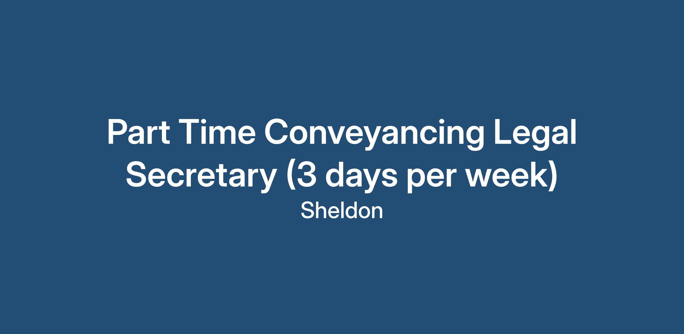 Major Recruiting Oldbury are delighted to be recruiting for a professional award winning law firm who are seeking an experienced Conveyancing Legal Secretary to work at their Sheldon firm on a part time basis of Monday, Tuesday and any other day of your choice 9am to 5.30pm.