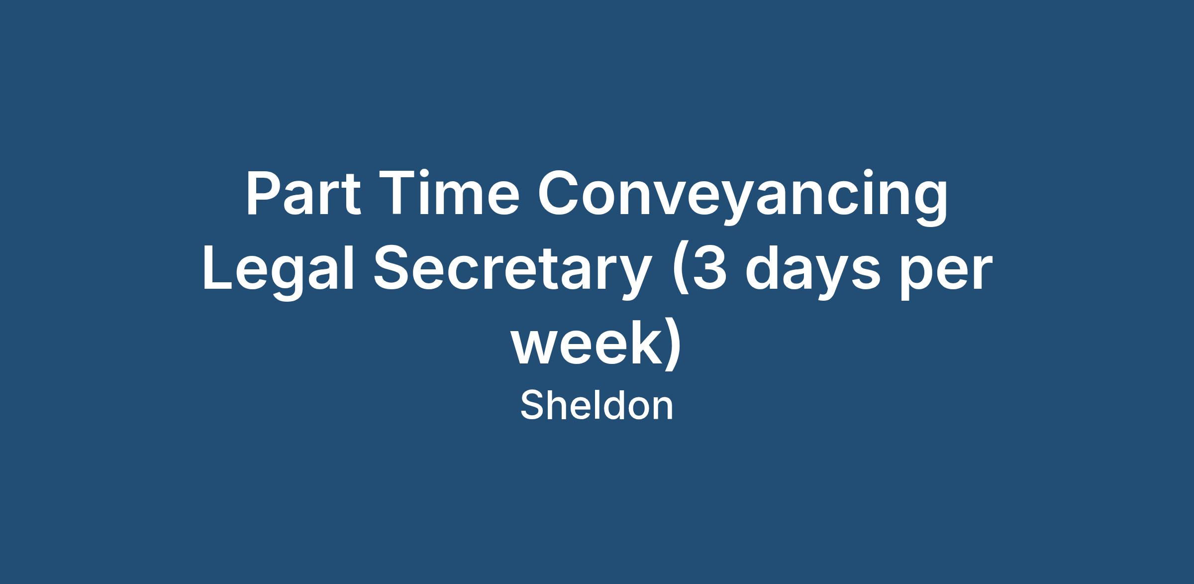 Major Recruiting Oldbury are delighted to be recruiting for a professional award winning law firm who are seeking an experienced Conveyancing Legal Secretary to work at their Sheldon firm on a part time basis of Monday, Tuesday and any other day of your choice 9am to 5.30pm.