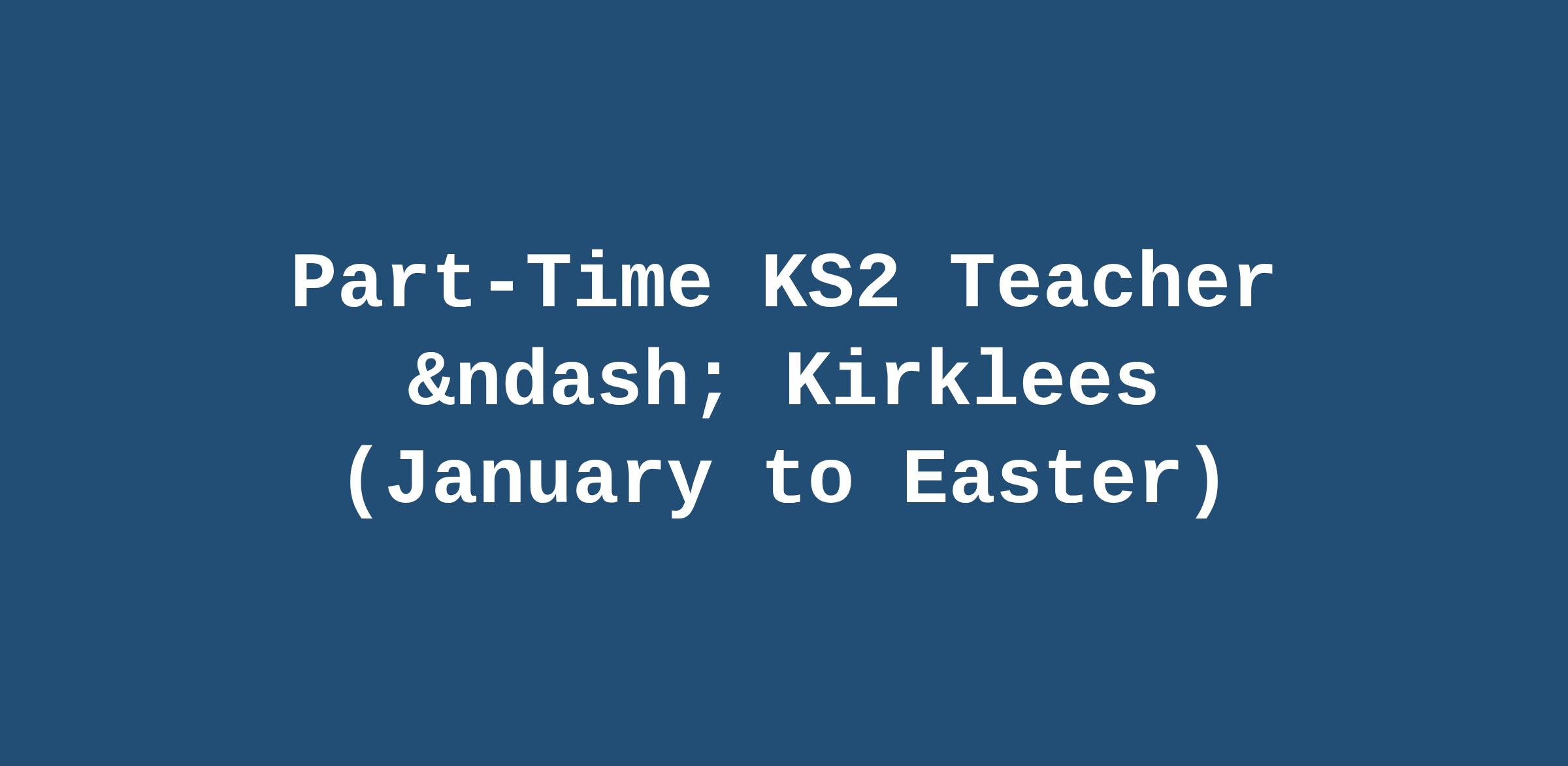 Part-Time KS2 Teacher – Kirklees (January to Easter)