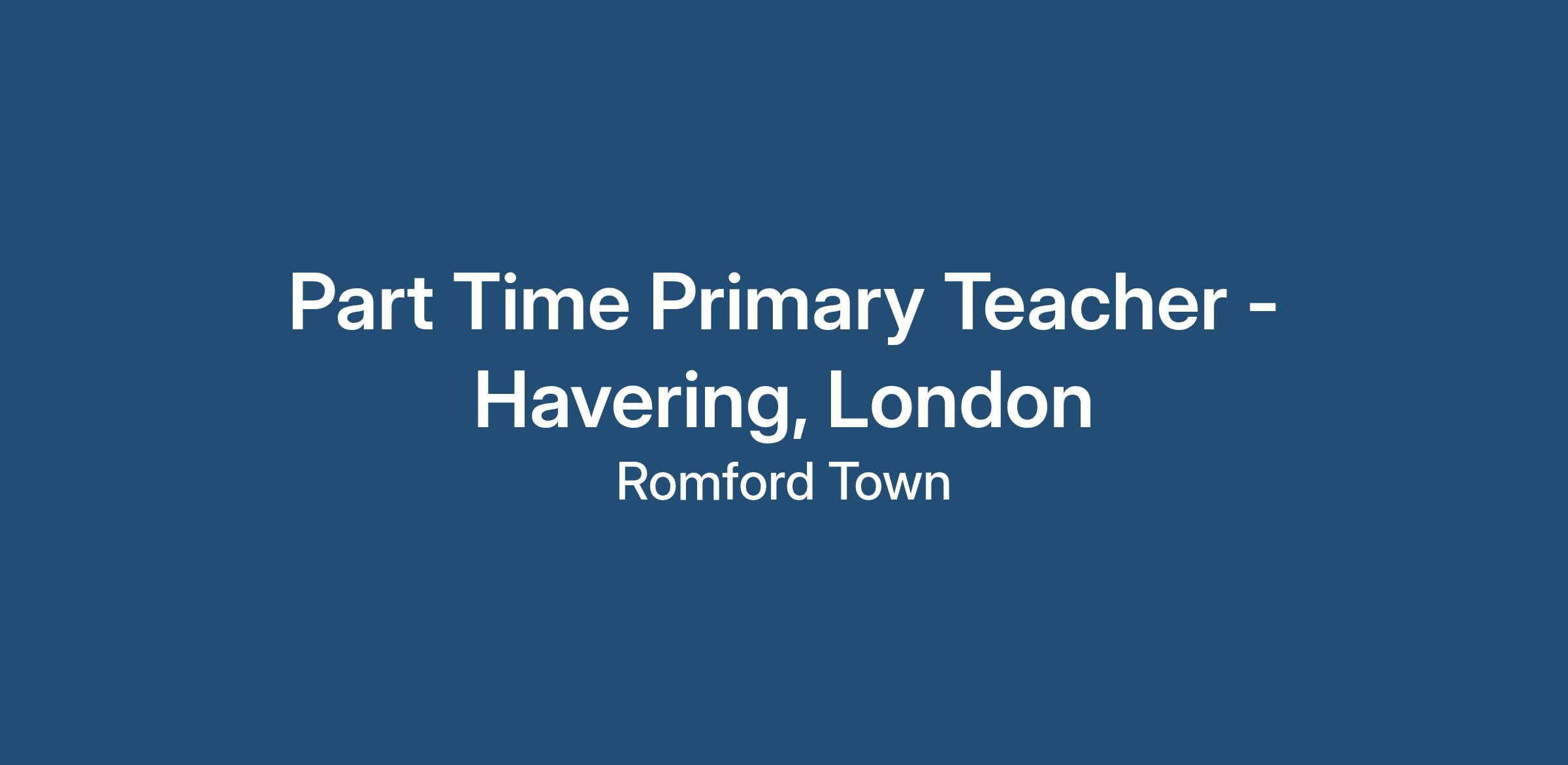 Part Time Primary Teacher - Havering, London