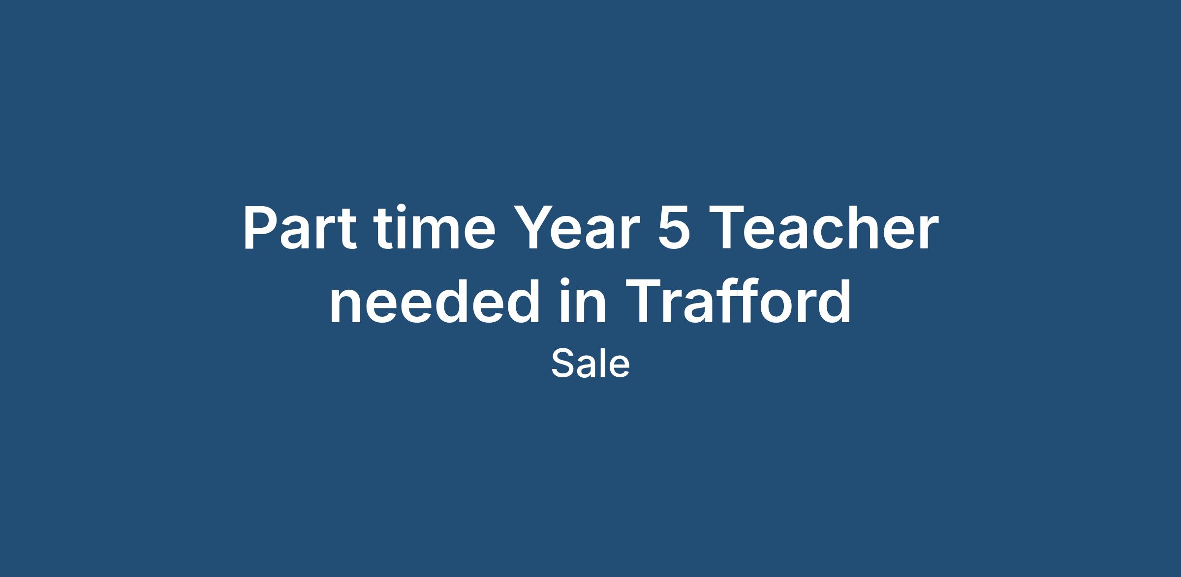 Part time Year 5 Teacher needed in Trafford